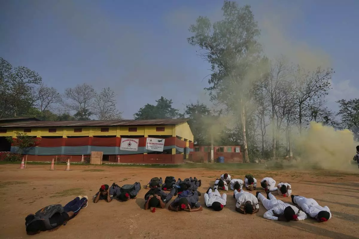 National Cadet Corps members participate during a mock drill to train civilians and security personnel to respond in case of attack, in Guwahati, India, Wednesday, May 7, 2025 amid rising fears of wider conflict following India's strikes in Pakistan. (AP Photo/Anupam Nath)