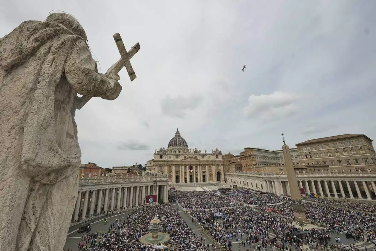 VATICAN CITY (AP) — Pope Leo XIV called for a genuine and just peace in Ukraine and an immediate ceasefire in Gaza, in his first Sunday noon blessing as pontiff that featured some symbolic gestures suggesting a message of unity in a polarized Catholic Church.