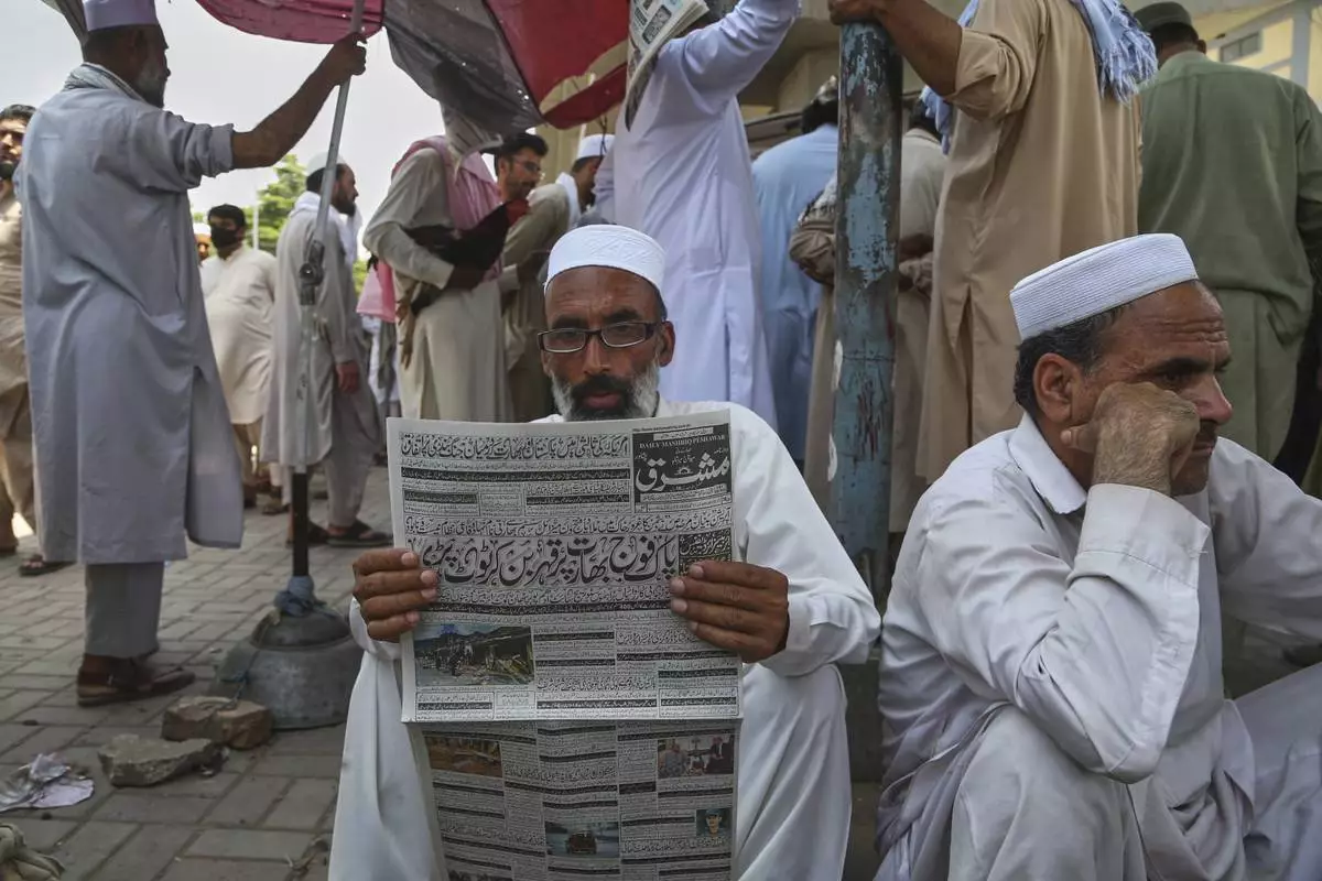 A Pakistani reads a morning newspaper at a stall, a day after the ceasefire between Indian and Pakistan was announced, in Peshawar, Pakistan, Sunday, May 11, 2025. (AP Photo/Muhammad Sajjad)