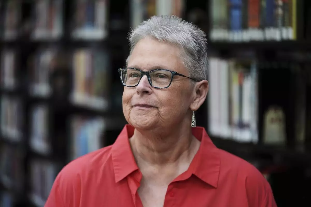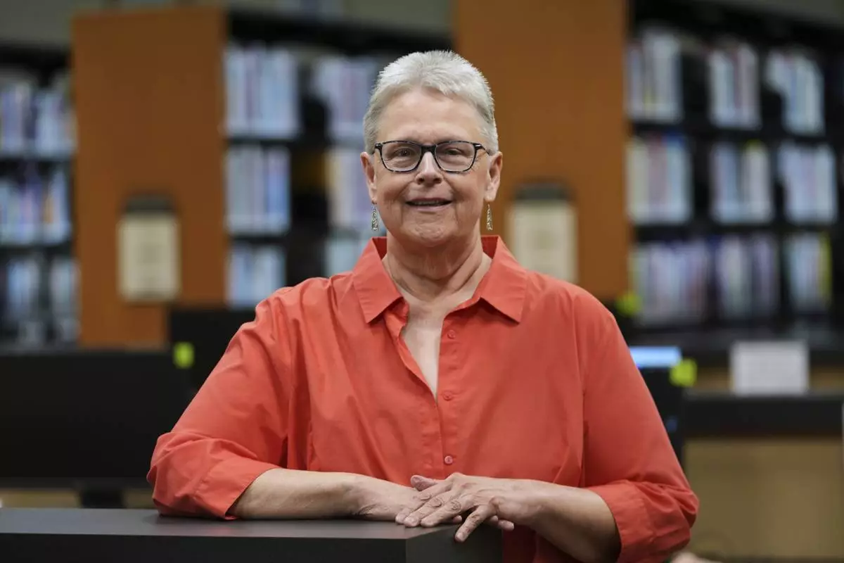 Lisa Brakel poses at the Bedford Branch Library in Temperance, Mich., Tuesday, May 6, 2025. (AP Photo/Paul Sancya)