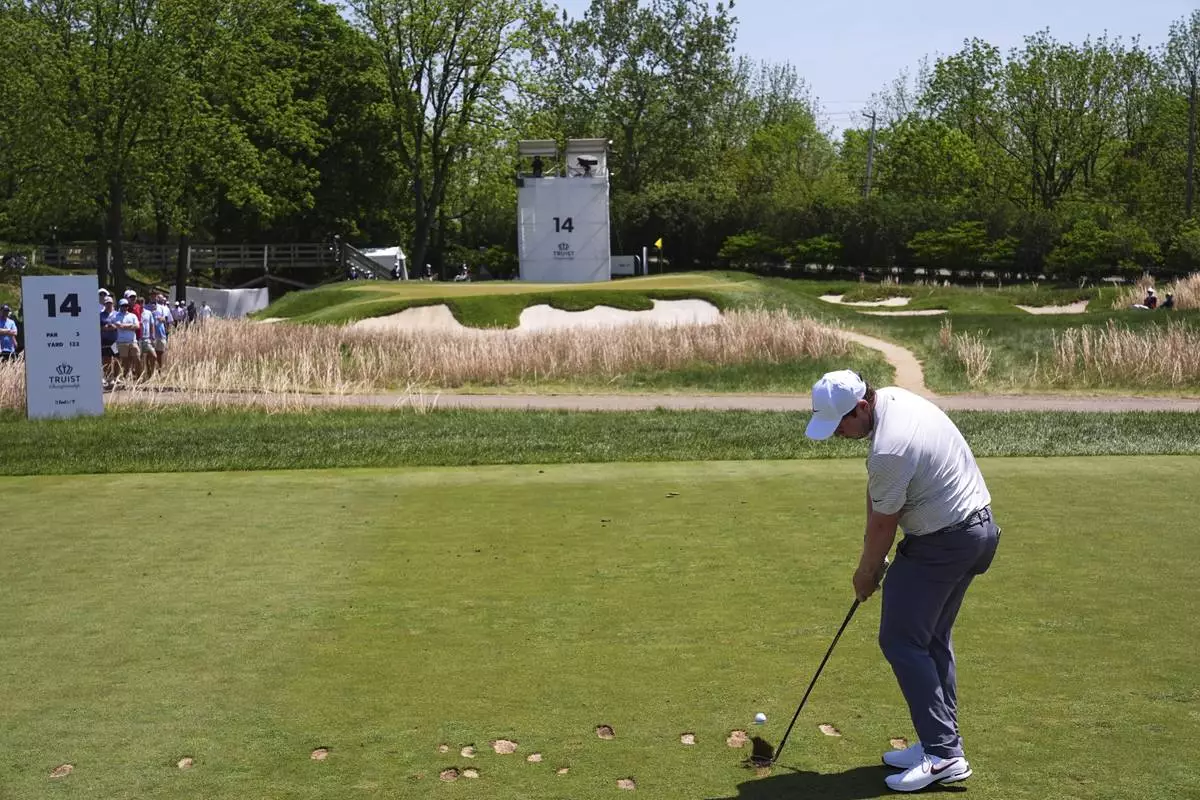 FLOURTOWN, Pa. (AP) — With the tease of a possible ace on each tee shot, golf fan Jason Brown hunkered down early at the Philadelphia Cricket Club’s 14th hole. This was no ordinary par-3, and Brown — like most of the fans who crowded the area — had to take a look at not only the shortest hole in the Truist Championship, it was the shortest par-3 for a regular PGA Tour event in decades.