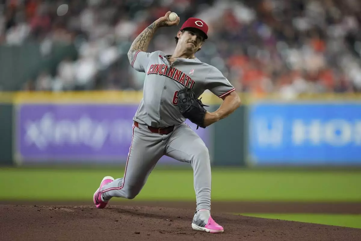 Cincinnati Reds starting pitcher Chase Petty (61) throws during the first inning of a baseball game against the Houston Astros in Houston, Sunday, May 11, 2025. (AP Photo/Ashley Landis)