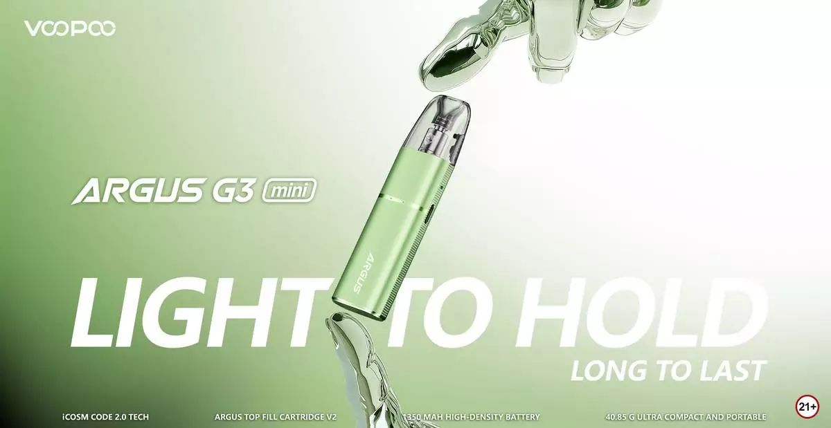 Weighing just 40.85 g (nearly 20% lighter than its predecessor), the ARGUS G3 mini is incredibly lightweight and portable. Despite its compact size, the 1350 mAh battery provides long-lasting power, ensuring worry-free vaping. Whether you're enjoying the great outdoors, taking a break, or relaxing at home, the ARGUS G3 mini delivers days of smooth, satisfying experiences.