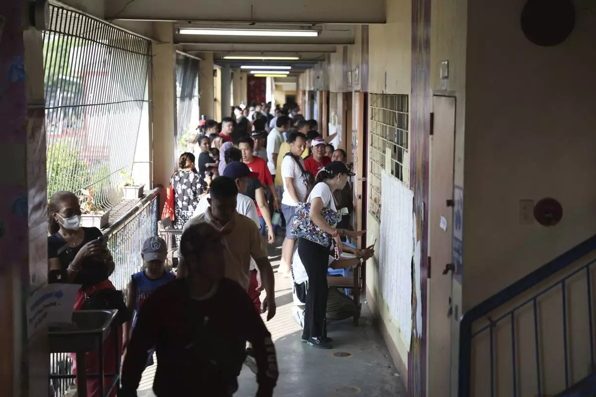 Voters queue as they cast their ballots at a polling station, in Quezon City, Philippines, Monday, May 12, 2025. (AP Photo/Basilio Sepe)