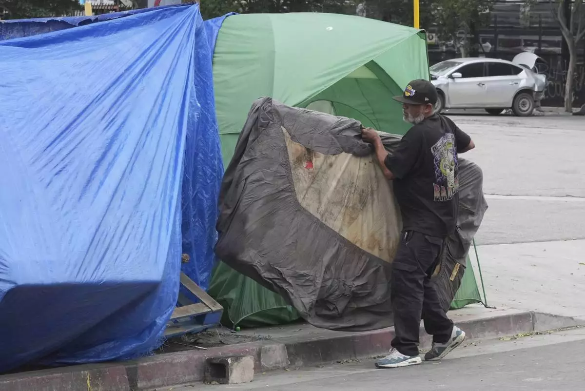 In a Los Angeles neighborhood Monday, Jay Joshua oversaw a small encampment of about half a dozen tents where he lives. Joshua said he cleans the area daily because of a school nearby. He said encampments can be a safe space for those living there.