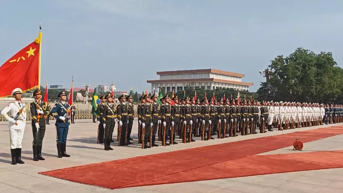 Chinese President Xi Jinping is about to hold a welcome ceremony for visiting Brazilian President Luiz Inacio Lula da Silva at the square outside the east gate of the Great Hall of the People in Beijing on Tuesday afternoon.