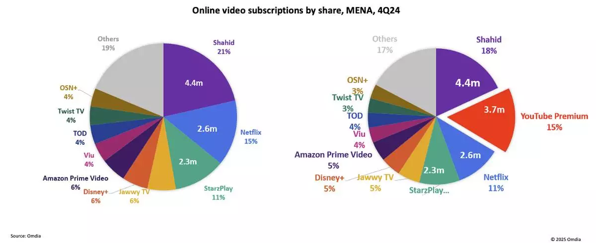 Online video subscriptions by share, MENA, 4Q24