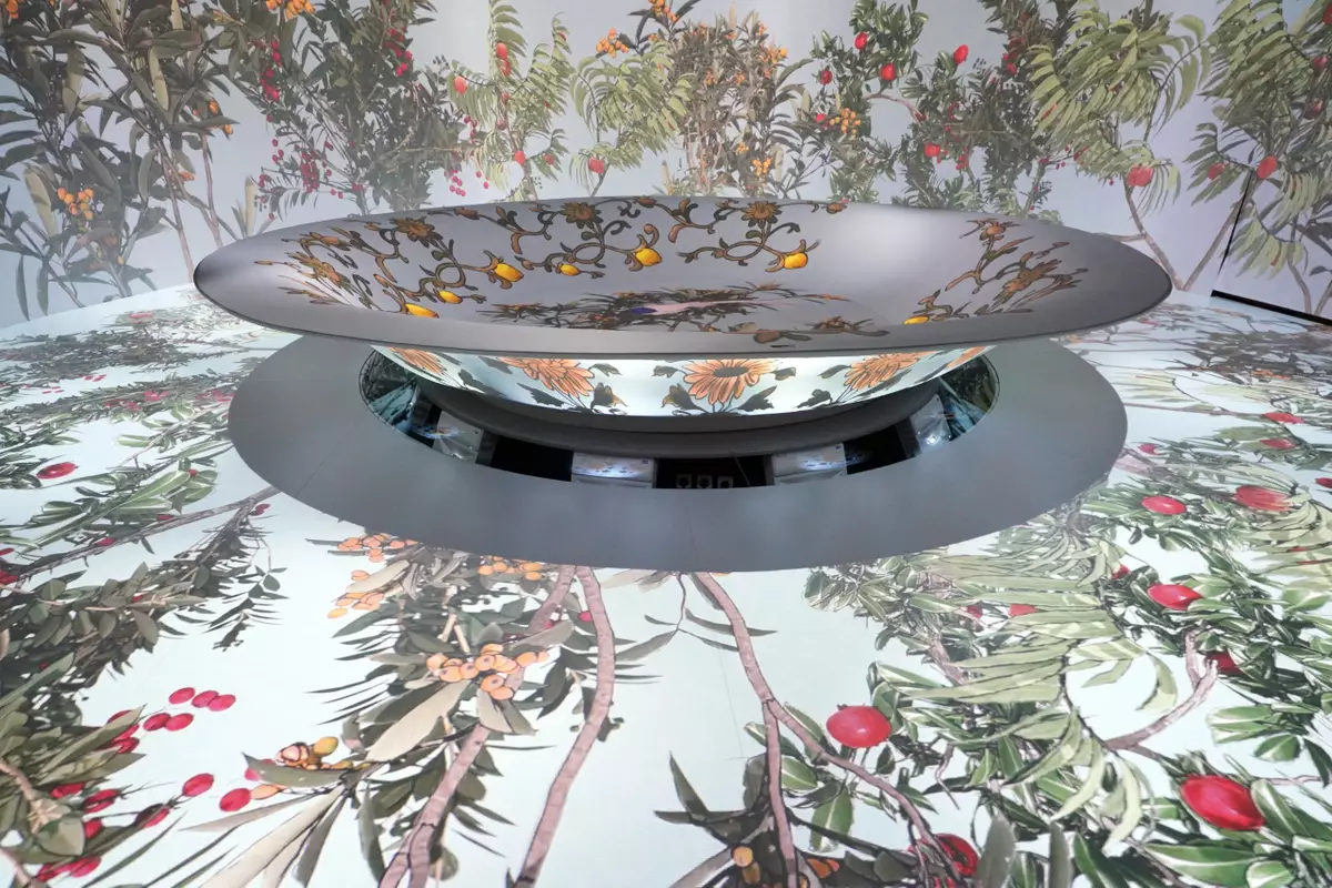 “The Ways in Patterns: An Immersive Digital Exhibition from the Palace Museum” immerses visitors in the rich tapestry of traditional Chinese culture through the creative use of digital technology. Diverse patterns selected from the Palace Museum’s architecture, ceramics, and embroidered textiles are creatively reinterpreted into innovative displays of light and shadow, inspiring visitors to deepen their understanding of the rich origins of these intricate designs and to develop a greater appreciation for Chinese culture. The exhibition’s seven immersive spaces feature embroidery and brocade, an intricate caisson ceiling design, and dynamic floor patterns. Visitors can also create their own designs of animated fish and birds.