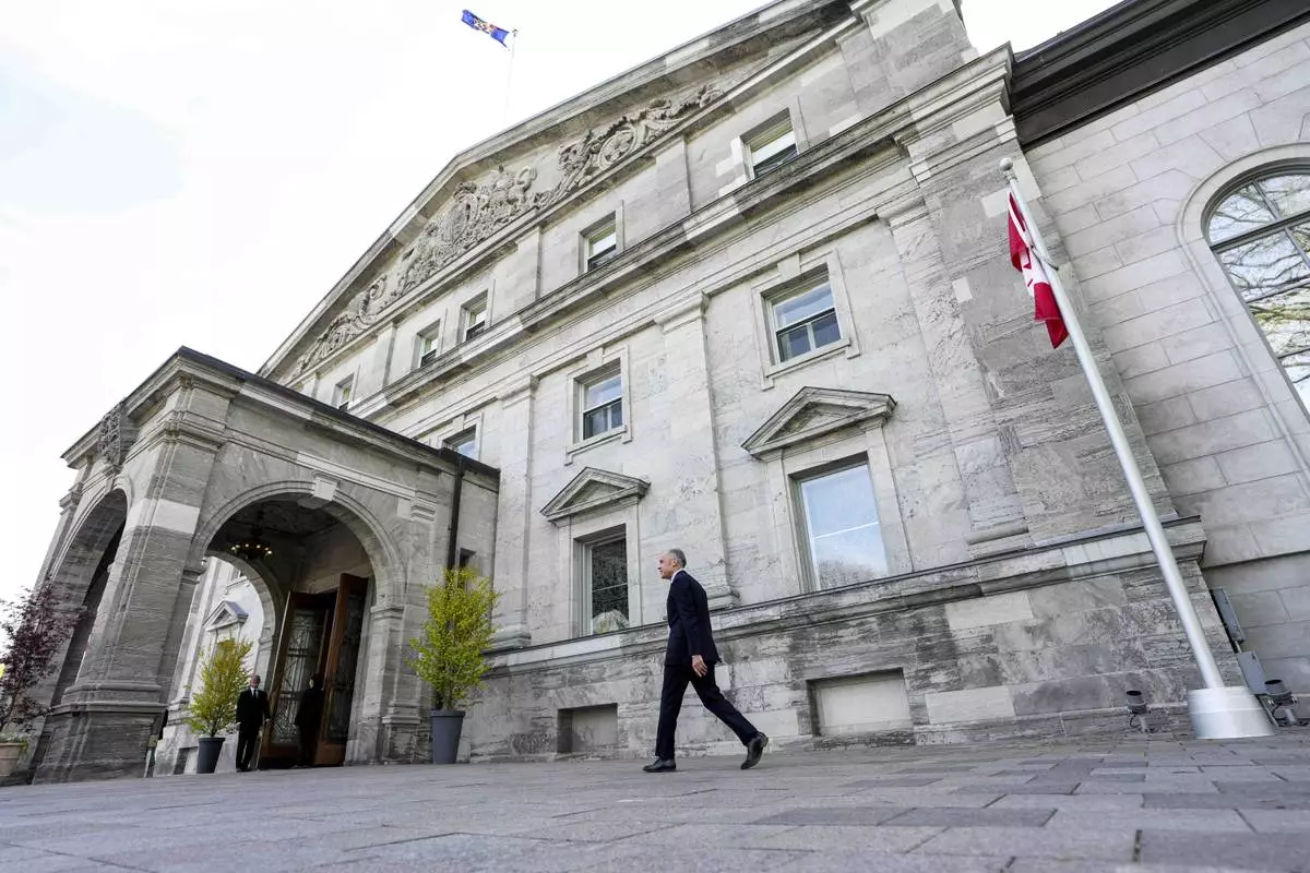 Canadian Prime Minister Mark Carney arrives for the cabinet swearing-in ceremony at Rideau Hall in Ottawa, Tuesday, May 13, 2025. (Spencer Colby/The Canadian Press via AP)