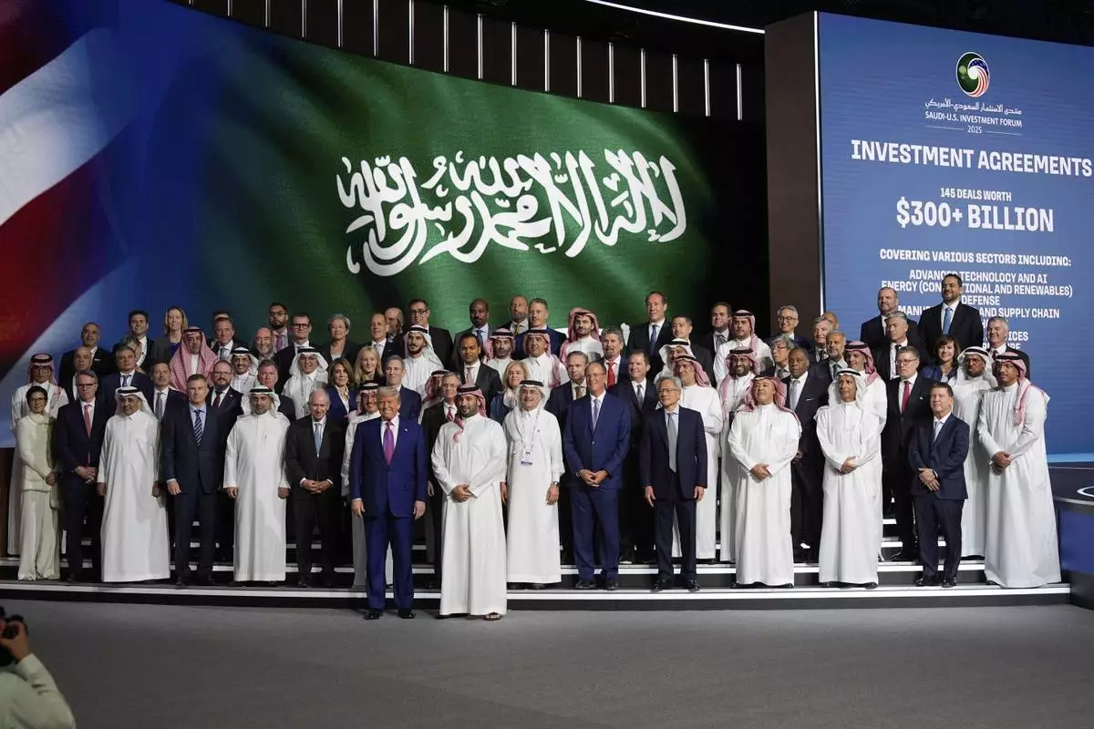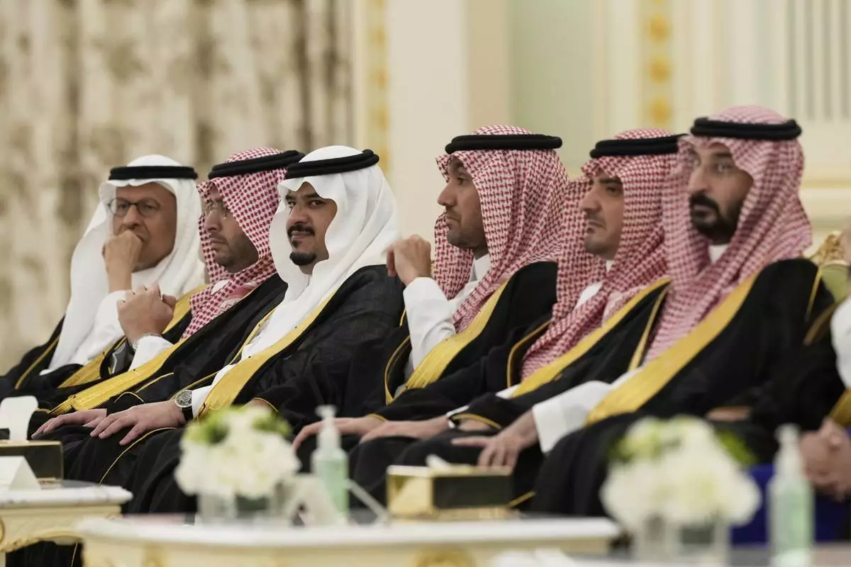 Saudi officials attend a signing ceremony at the Royal Palace in Riyadh, Saudi Arabia, Tuesday, May 13, 2025. (AP Photo/Alex Brandon)