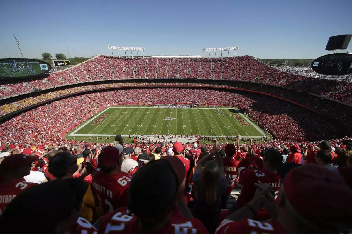 FILE - Fans watch an NFL football game between the Kansas City Chiefs and the New York Giants at Arrowhead Stadium, Sept. 29, 2013, in Kansas City, Mo. (AP Photo/Charlie Riedel, file)