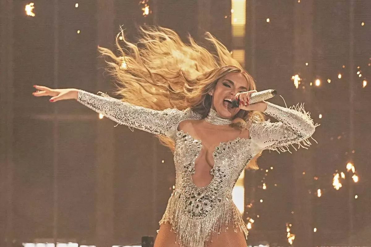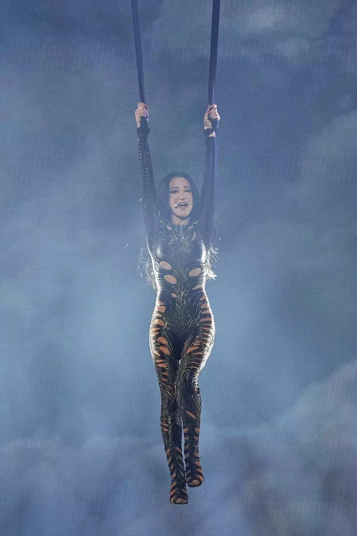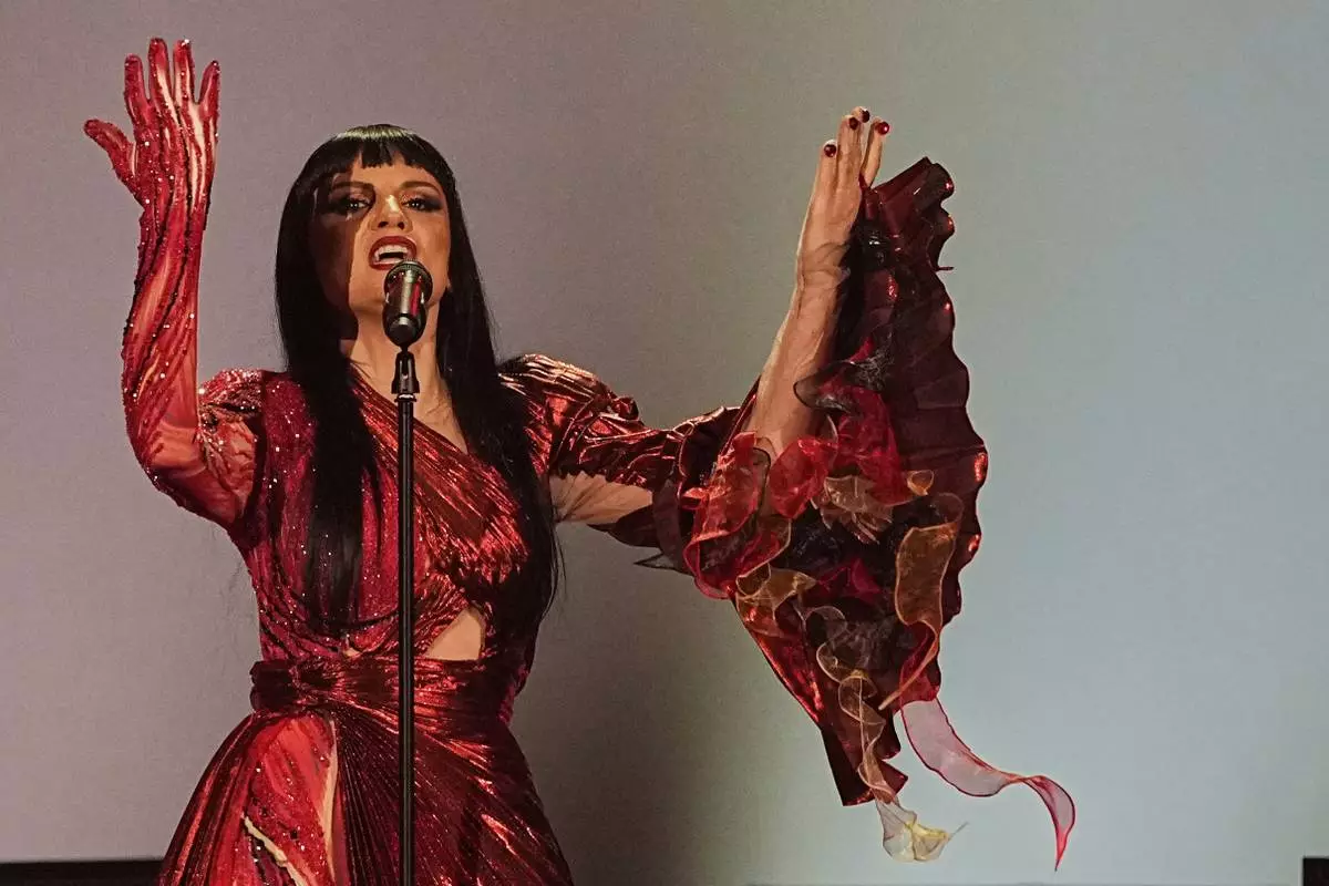 Melody from Spain performs the song "ESA DIVA" during the first semi-final of the 69th Eurovision Song Contest, in Basel, Switzerland, Tuesday, May 13, 2025. (AP Photo/Martin Meissner)