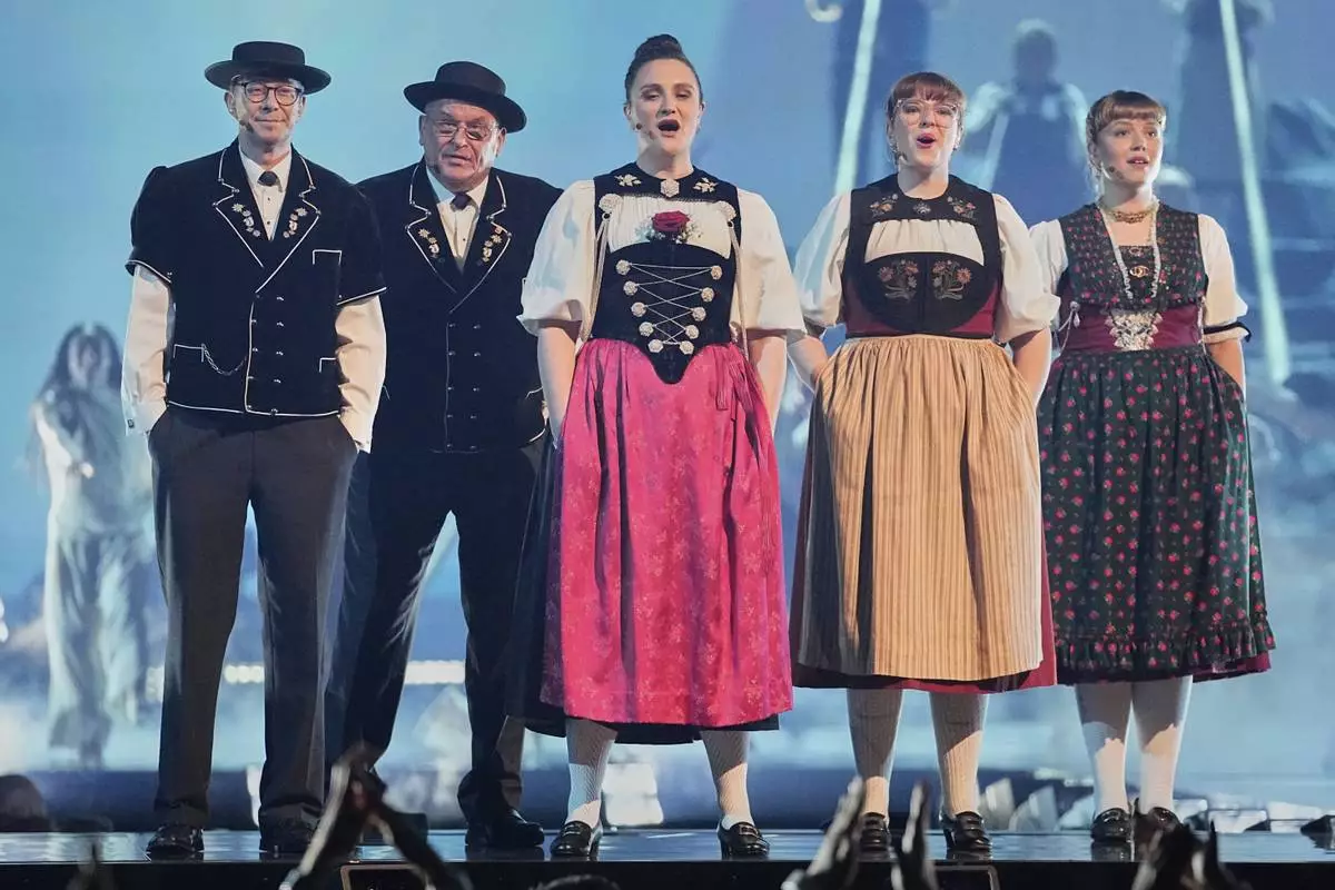 Traditional Swiss singers open the show ahead of the start of the first semi-final of the 69th Eurovision Song Contest, in Basel, Switzerland, Tuesday, May 13, 2025. (AP Photo/Martin Meissner)