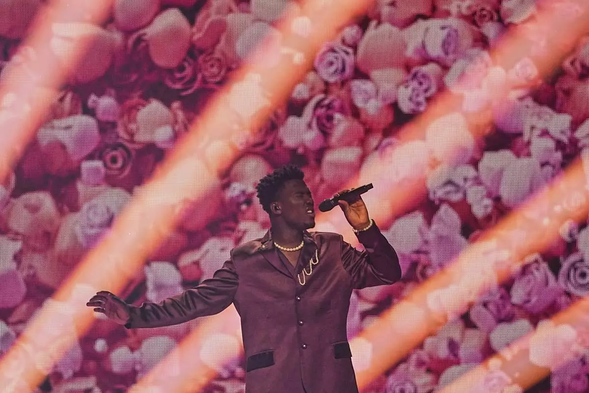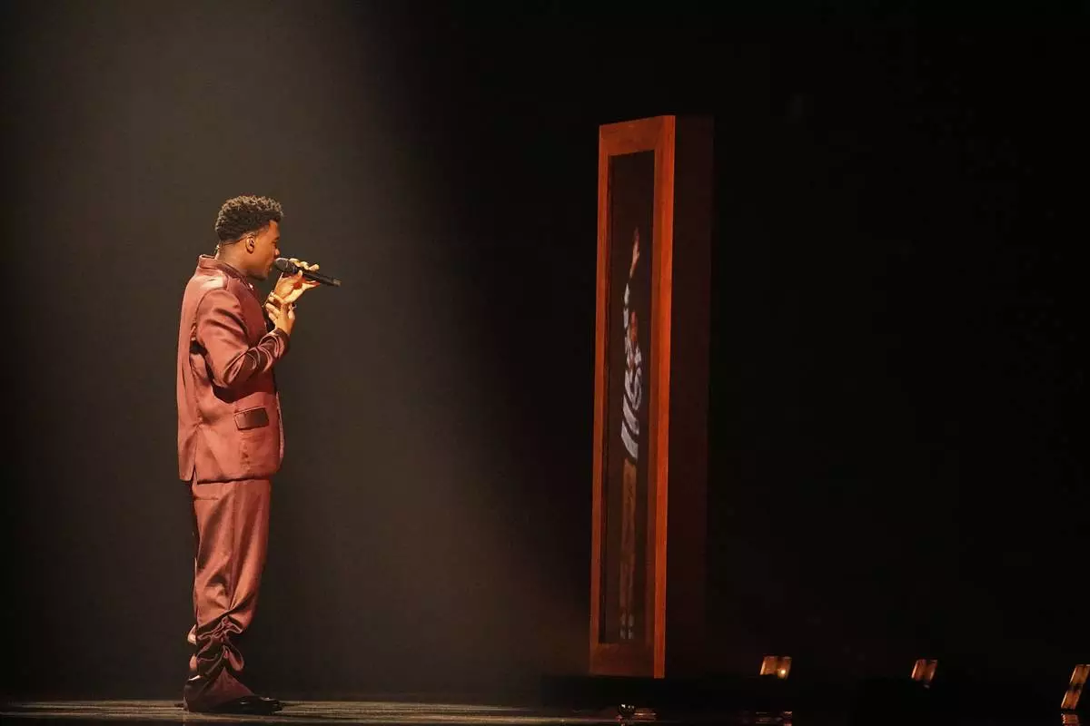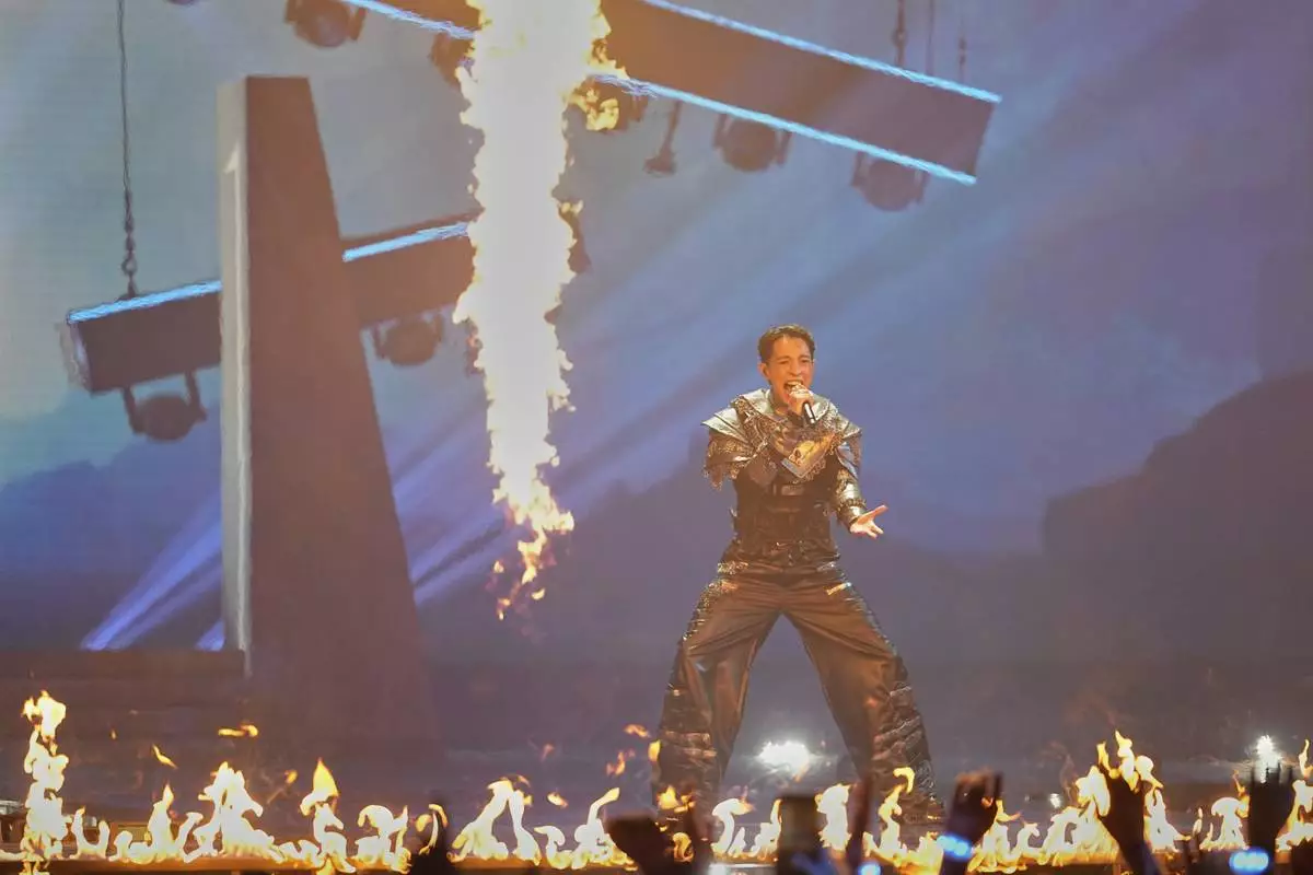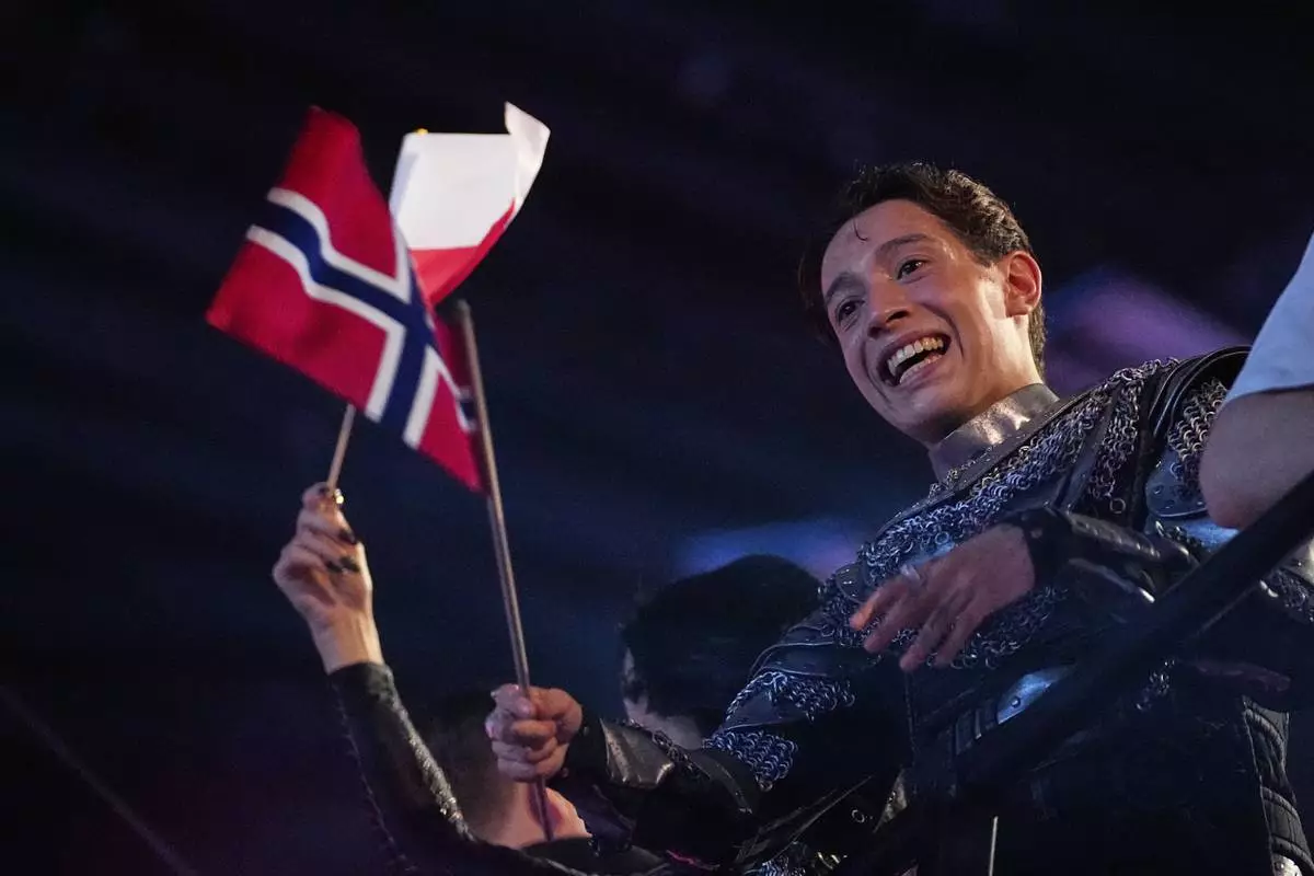 Kyle Alessandro from Norway performs the song "Lighter" during the first semi-final of the 69th Eurovision Song Contest, in Basel, Switzerland, Tuesday, May 13, 2025. (AP Photo/Martin Meissner)
