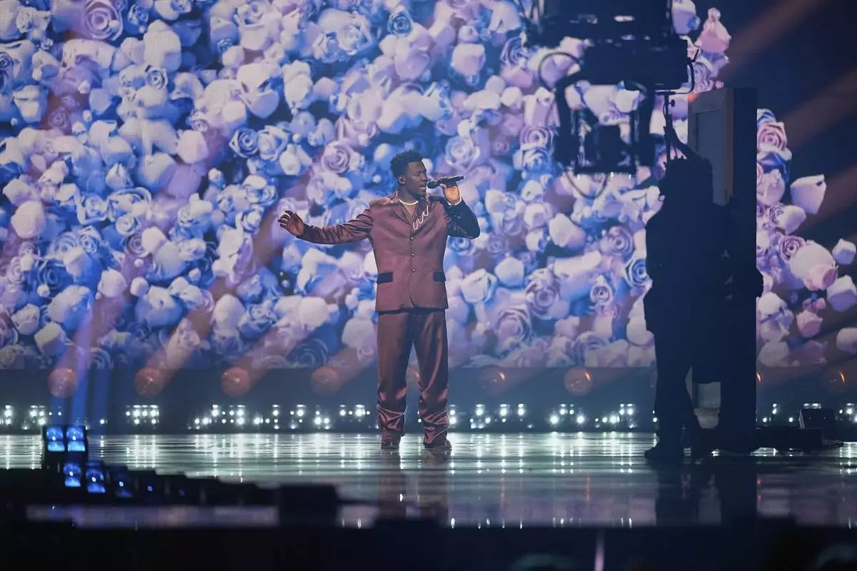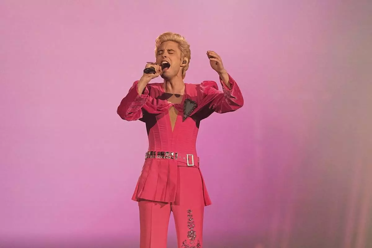 Claude from the Netherlands performs the song "C'est La Vie" during the first semi-final of the 69th Eurovision Song Contest, in Basel, Switzerland, Tuesday, May 13, 2025. (AP Photo/Martin Meissner)