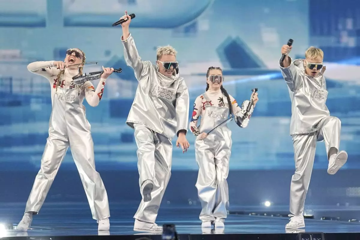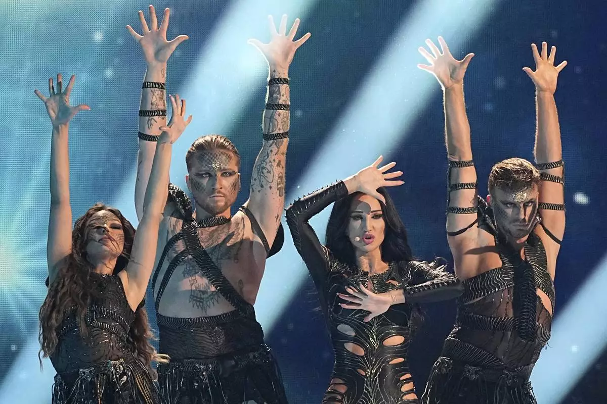 VAEB from Iceland performs the song "ROA" during the first semi-final of the 69th Eurovision Song Contest, in Basel, Switzerland, Tuesday, May 13, 2025. (AP Photo/Martin Meissner)