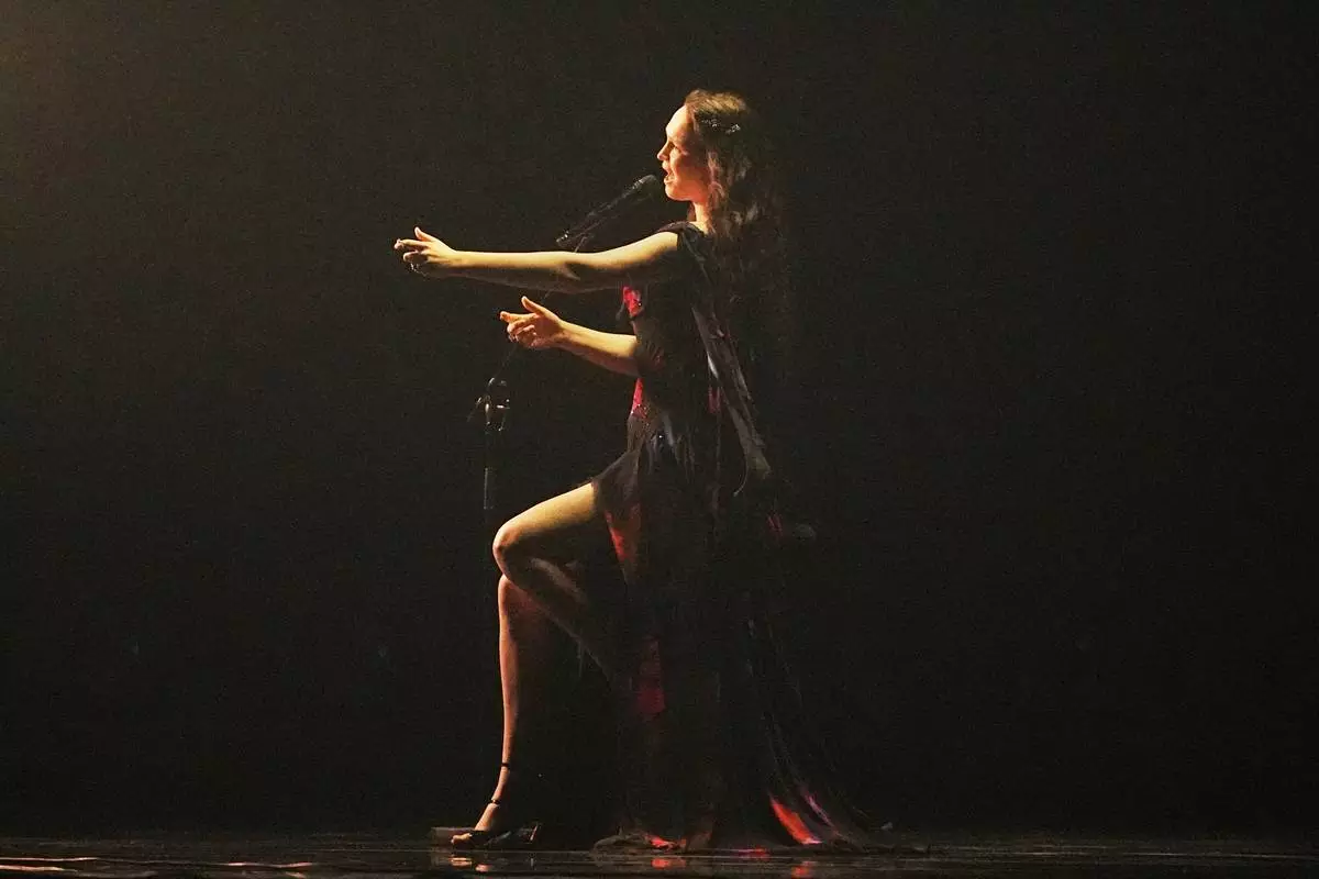 Justyna Steczkowska from Poland performs the song "GAJA" during the first semi-final of the 69th Eurovision Song Contest, in Basel, Switzerland, Tuesday, May 13, 2025. (AP Photo/Martin Meissner)