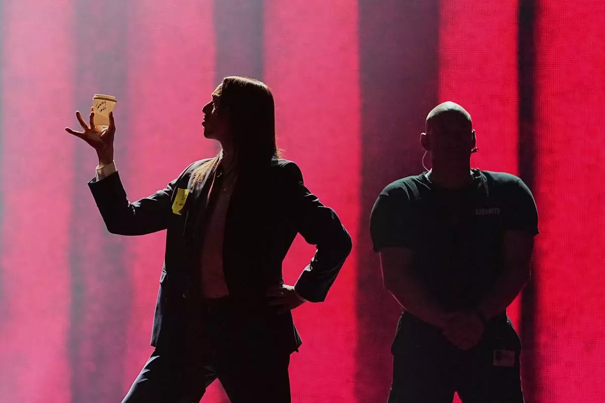 Tommy Cash from Estonia performs the song "Espresso Macchiato" during the first semi-final of the 69th Eurovision Song Contest, in Basel, Switzerland, Tuesday, May 13, 2025. (AP Photo/Martin Meissner)