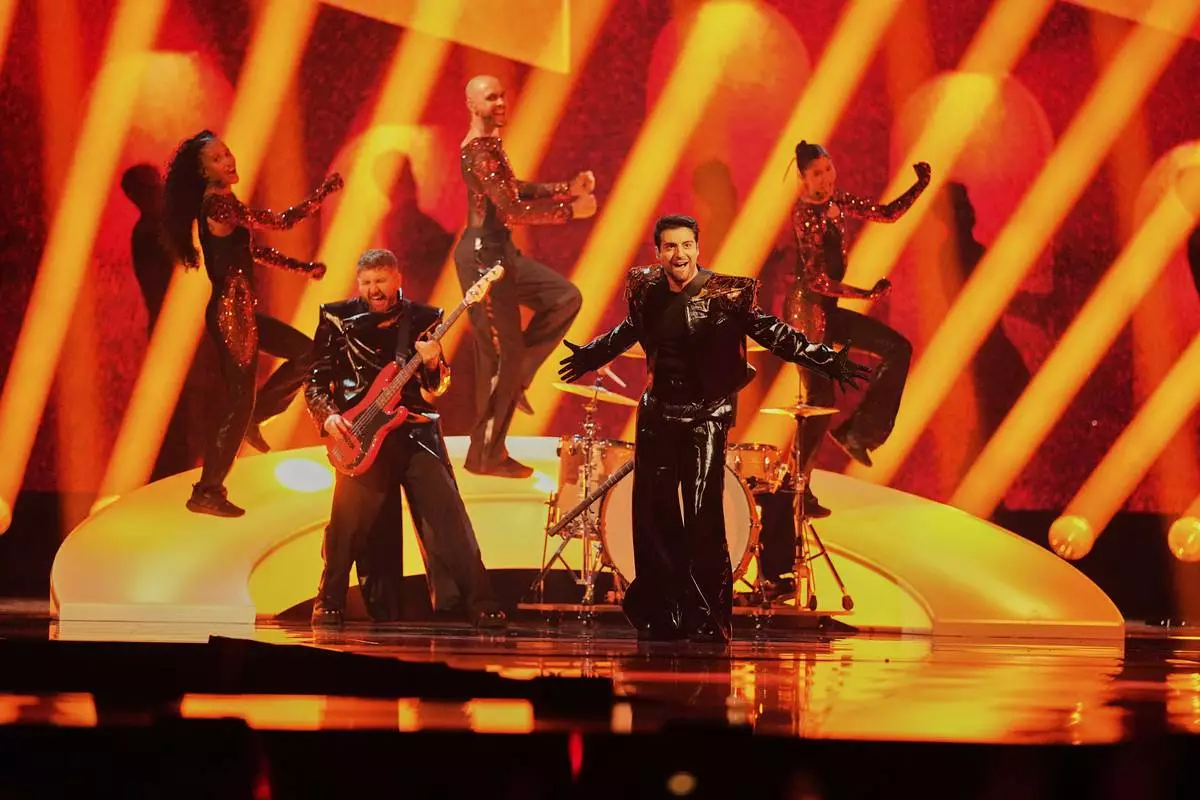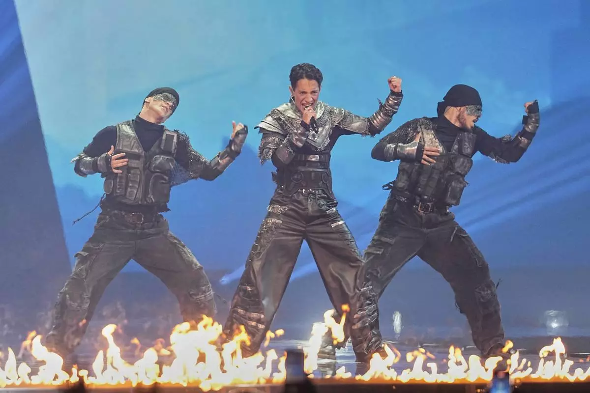 during the first semi-final of the 69th Eurovision Song Contest, in Basel, Switzerland, Tuesday, May 13, 2025. (AP Photo/Martin Meissner)