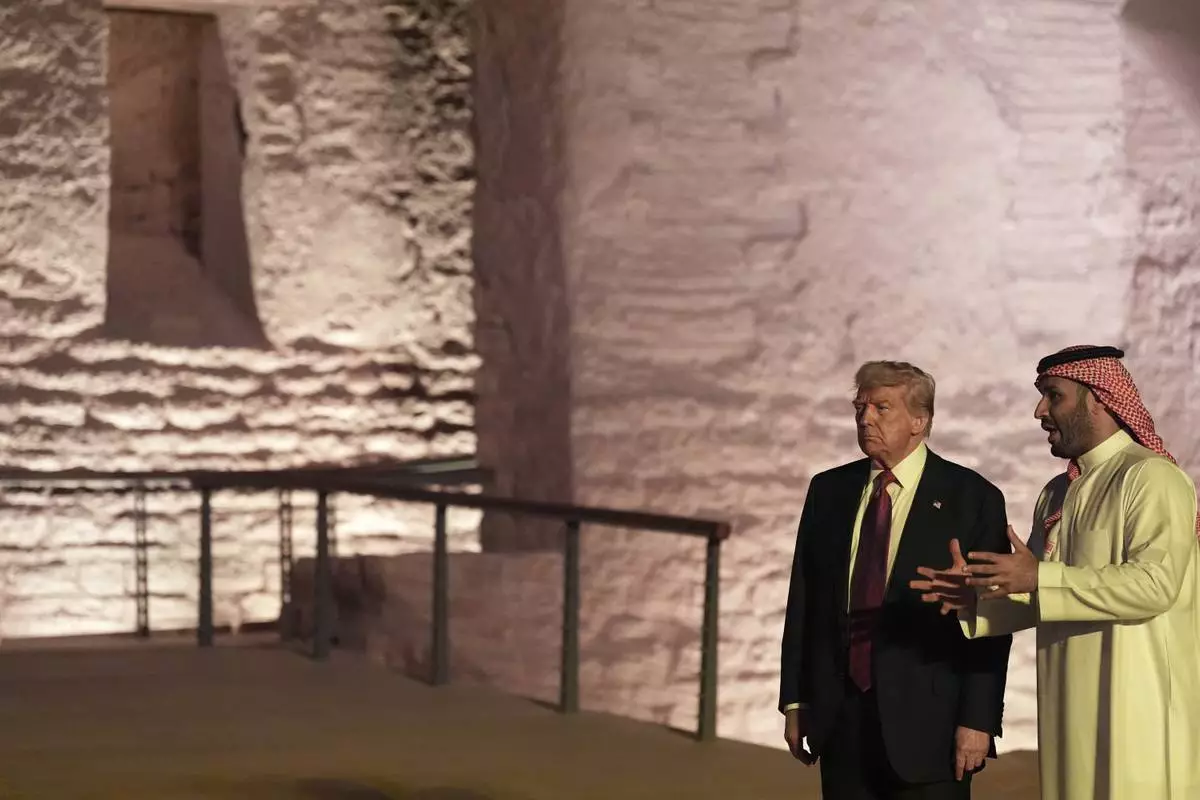 President Donald Trump and His Royal Highness, Mohammed bin Salman al Saud, Crown Prince and Prime Minister, Kingdom of Saudi Arabia, tour the Diriyah/At-Turaif UNESCO World Heritage Site, Tuesday, May 13, 2025, in Riyadh, Saudi Arabia. (AP Photo/Alex Brandon)