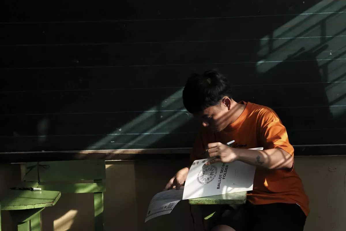 A man prepares to cast his ballot at a polling station in Quezon City, Philippines, Monday, May 12, 2025. (AP Photo/Basilio Sepe)