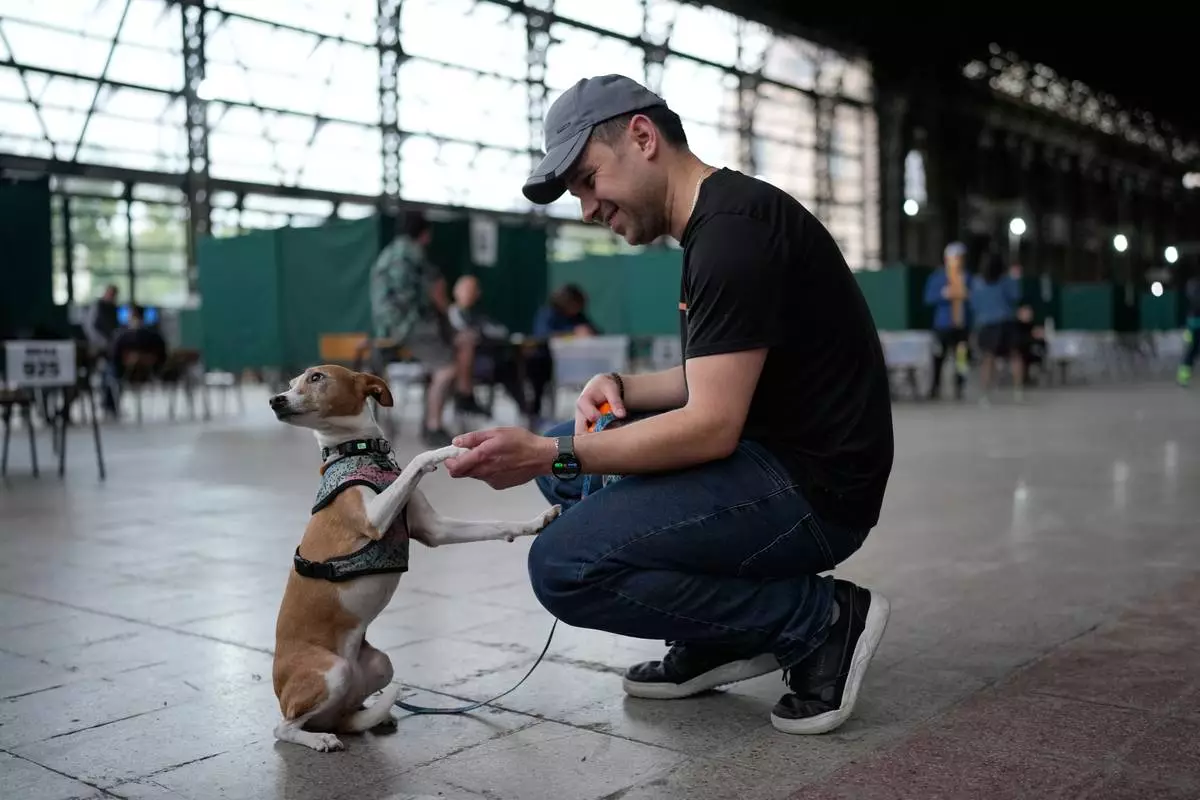 Luis Soto prepares to vote in the presidential runoff election in Santiago, Chile, Sunday, Dec. 14, 2025. (AP Photo/Natacha Pisarenko)