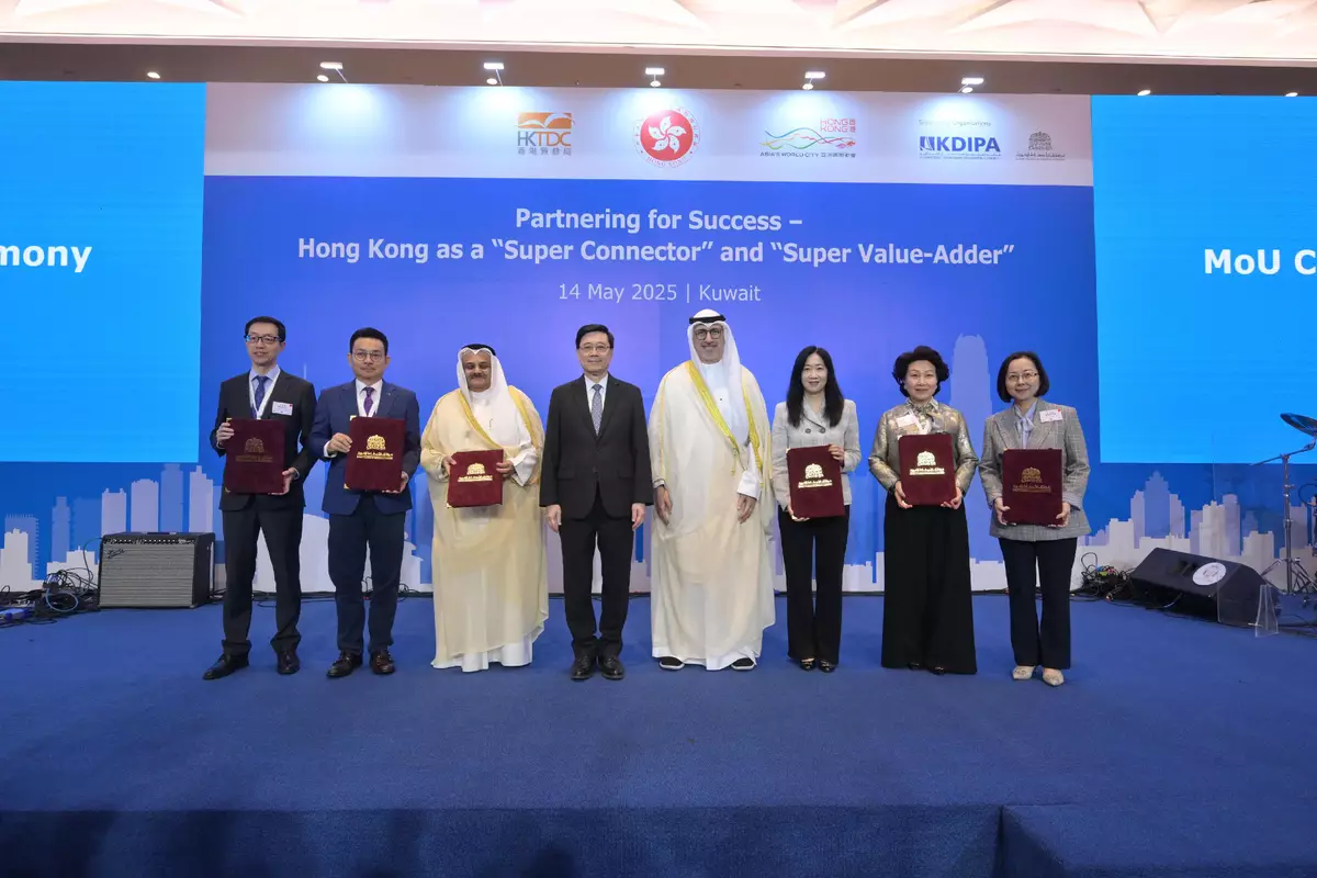 Ladies and gentlemen, I'm pleased to note that during our visit, Hong Kong and Kuwait have reached consensus on 24 concrete deliverables, through MOUs and related agreements. A ceremony will take place in just a moment.