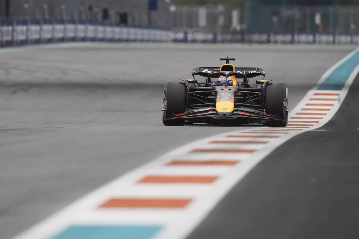 Red Bull driver Max Verstappen of the Netherlands races during the Formula One Miami Grand Prix auto race Sunday, May 4, 2025, in Miami Gardens. Fla. (AP Photo/Rebecca Blackwell)