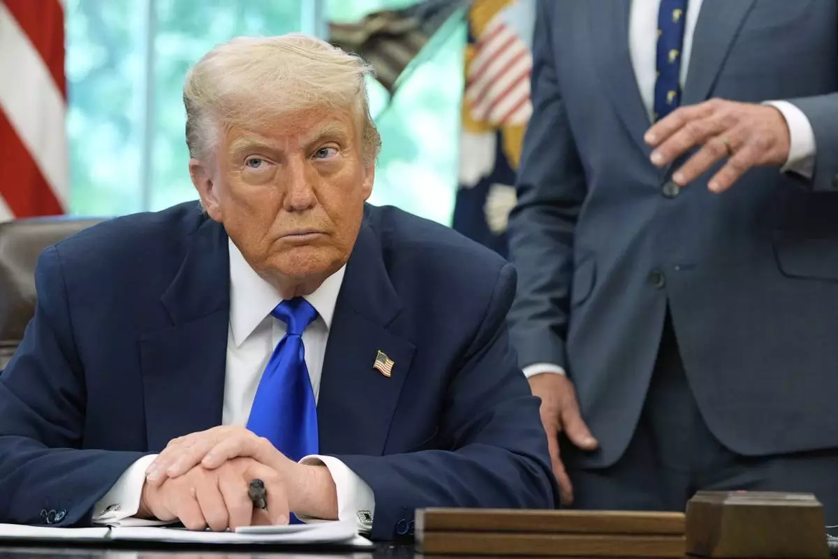 President Donald Trump listens as Health and Human Services Secretary Robert F. Kennedy Jr. speaks as he signs executive orders and proclamations in the Oval Office of the White House, Monday, May 5, 2025, in Washington. (AP Photo/Alex Brandon)
