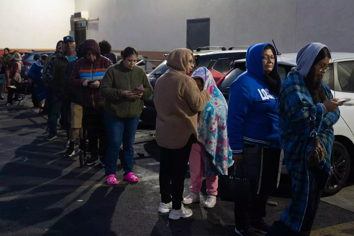 People wait in line to buy masa, a dough used to make tamales, outside Amapola Market in Downey, Calif., early Tuesday morning, Dec. 23, 2025. (AP Photo/Jae C. Hong)