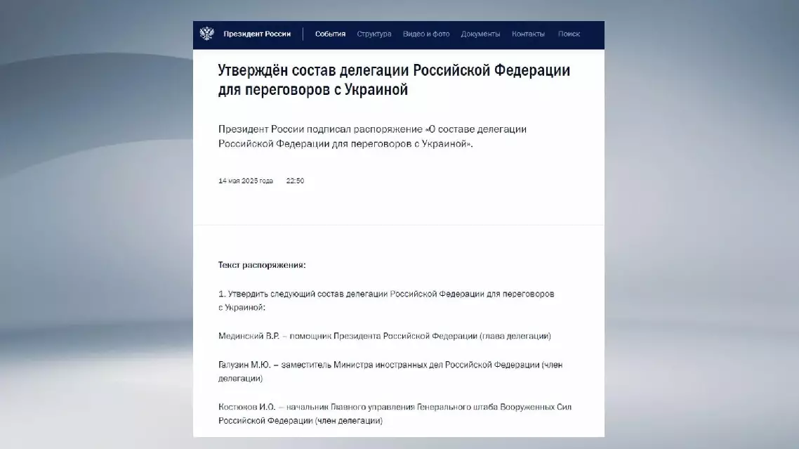 The delegation will be led by Russian Presidential Aide Vladimir Medinsky and includes Deputy Foreign Minister Mikhail Galuzin, chief of the main directorate of the general staff of the Russian army Igor Kostyukov, and Russian Deputy Defense Minister Alexander Fomin.