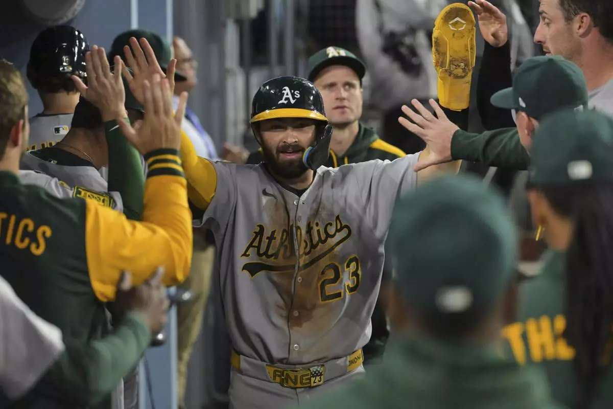 The Athletics tied it in the third on Tyler Soderstrom's two-run homer on the first pitch from Yoshinobu Yamamoto (5-3). They went ahead 3-2 in the fourth on Miguel Andujar's RBI double to left.
