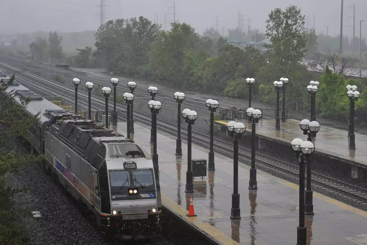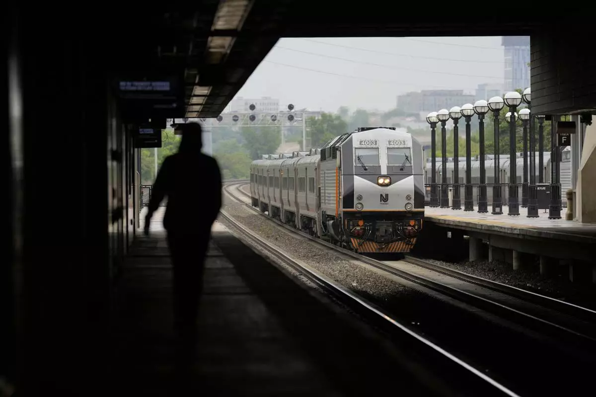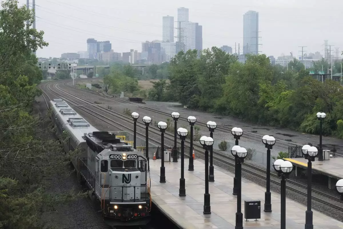 An NJ Transit train leaves the Secaucus Junction station in Secaucus, N.J., Wednesday, May 14, 2025. (AP Photo/Seth Wenig)