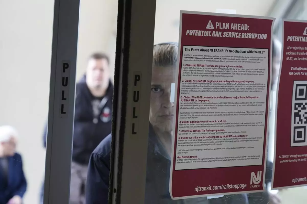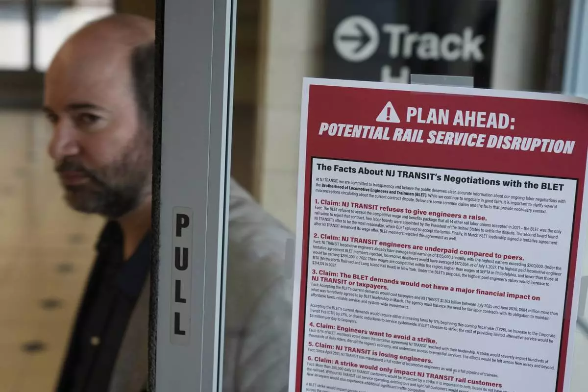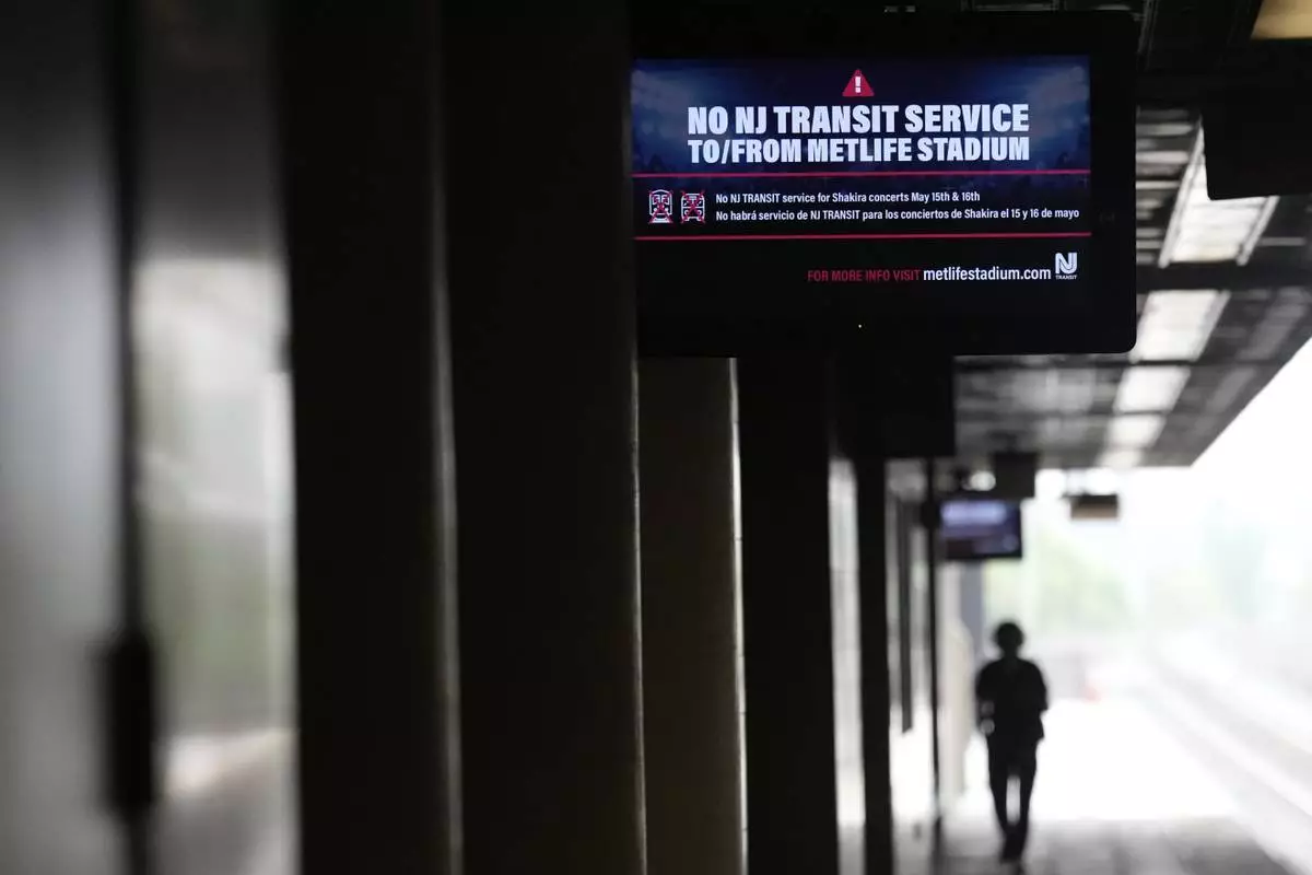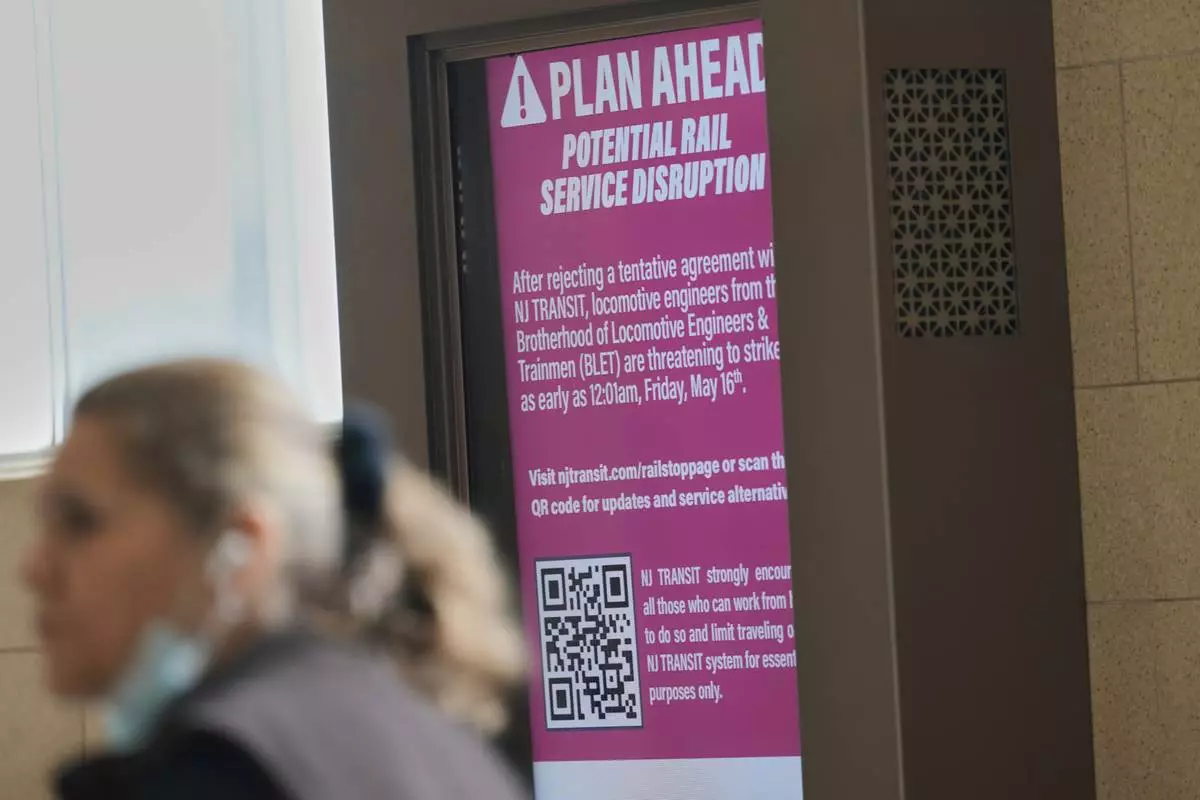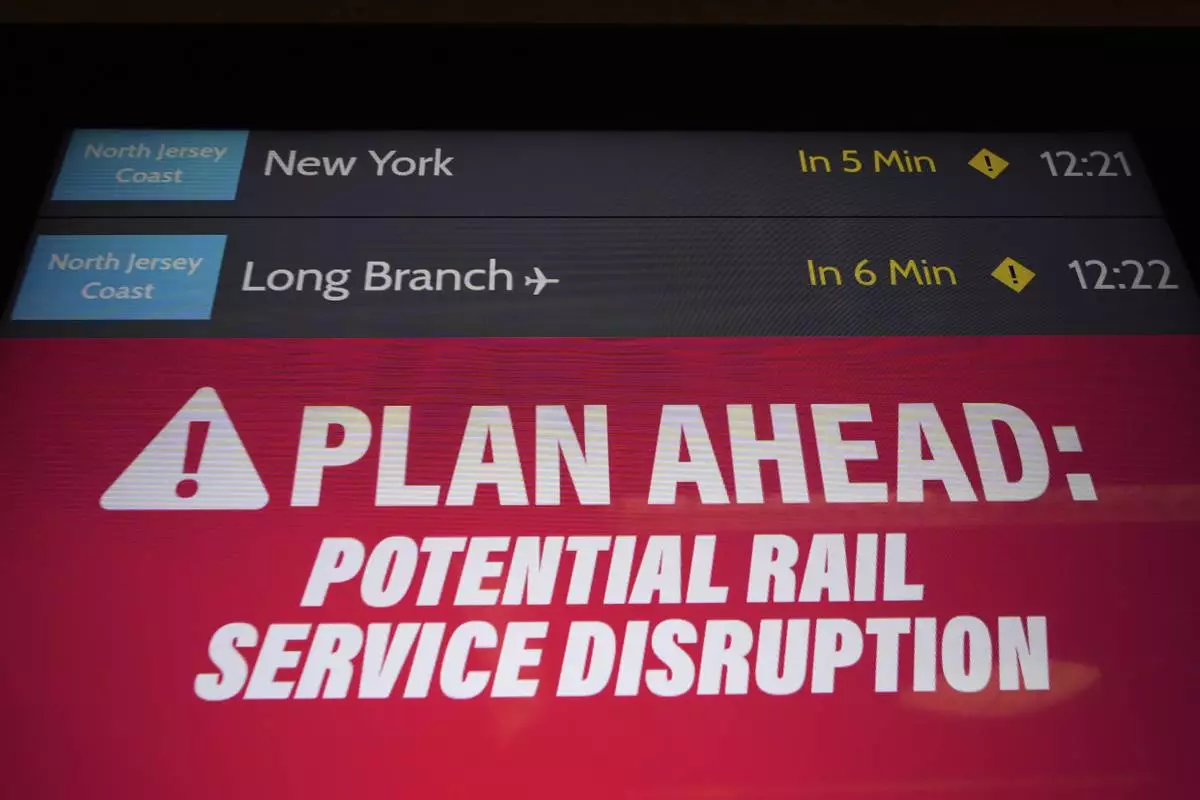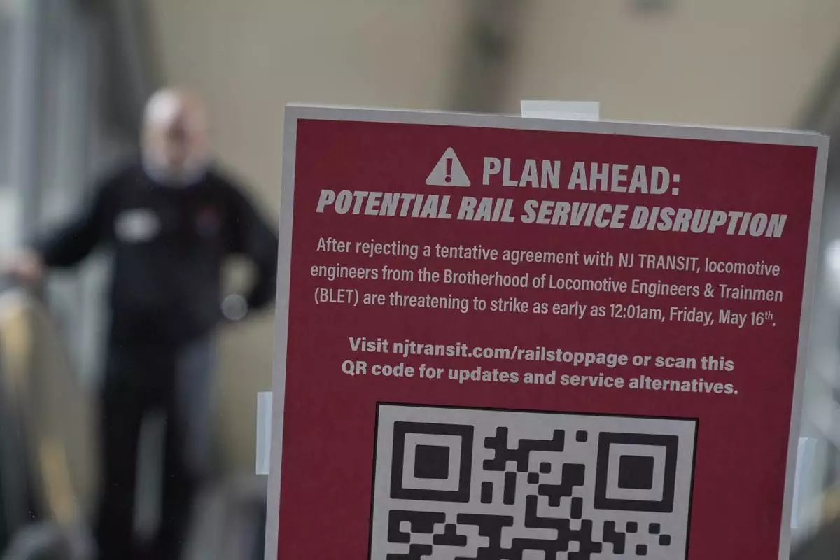 An sign advises commuters of potential NJ Transit service disruptions at the Secaucus Junction station in Secaucus, N.J., Wednesday, May 14, 2025. (AP Photo/Seth Wenig)
