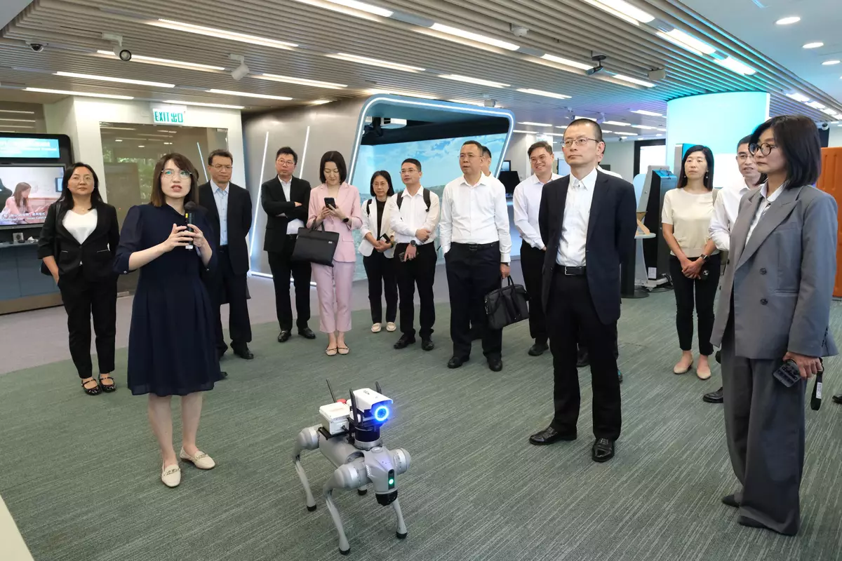 Arranged by the DPO, the Guangdong delegation visited the Smart Government Innovation Lab at the DPO office located at Cyberport after the meeting to learn more about the innovative solutions and products of local start-ups and small and medium enterprises, with the aim of facilitating the adoption of innovative technology to enhance city management and provide better public services for citizens. The delegation then visited Cyberport's Digital Tech Centre to learn how Hong Kong's innovation and technology enterprises apply cutting-edge technologies, such as AI, blockchain and Web3.0, and about their business applications.