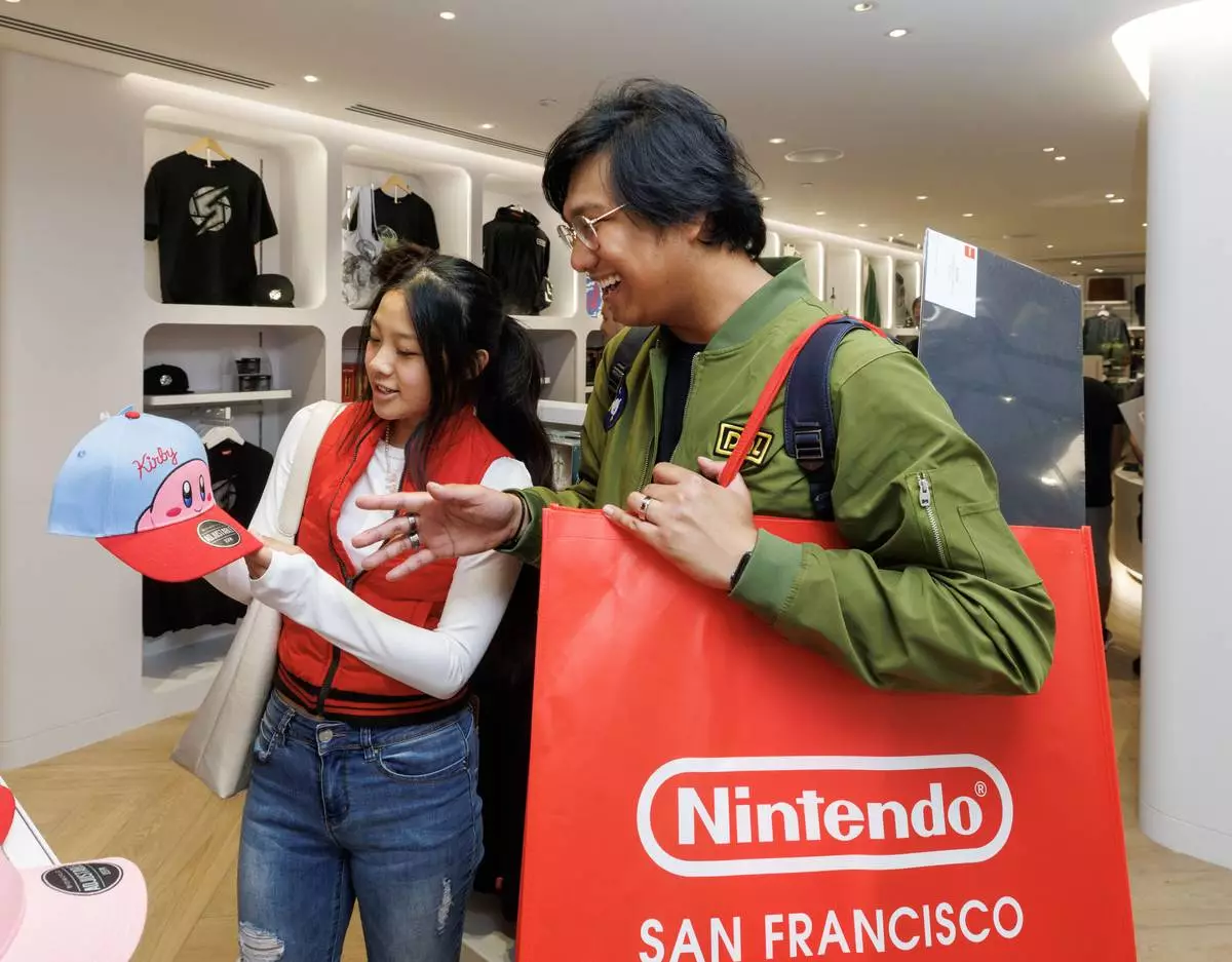 In this photo provided by Nintendo of America, fans happily explore Nintendo SAN FRANCISCO and the variety of products available, including Nintendo video game systems, games, and other character-based merchandise.
