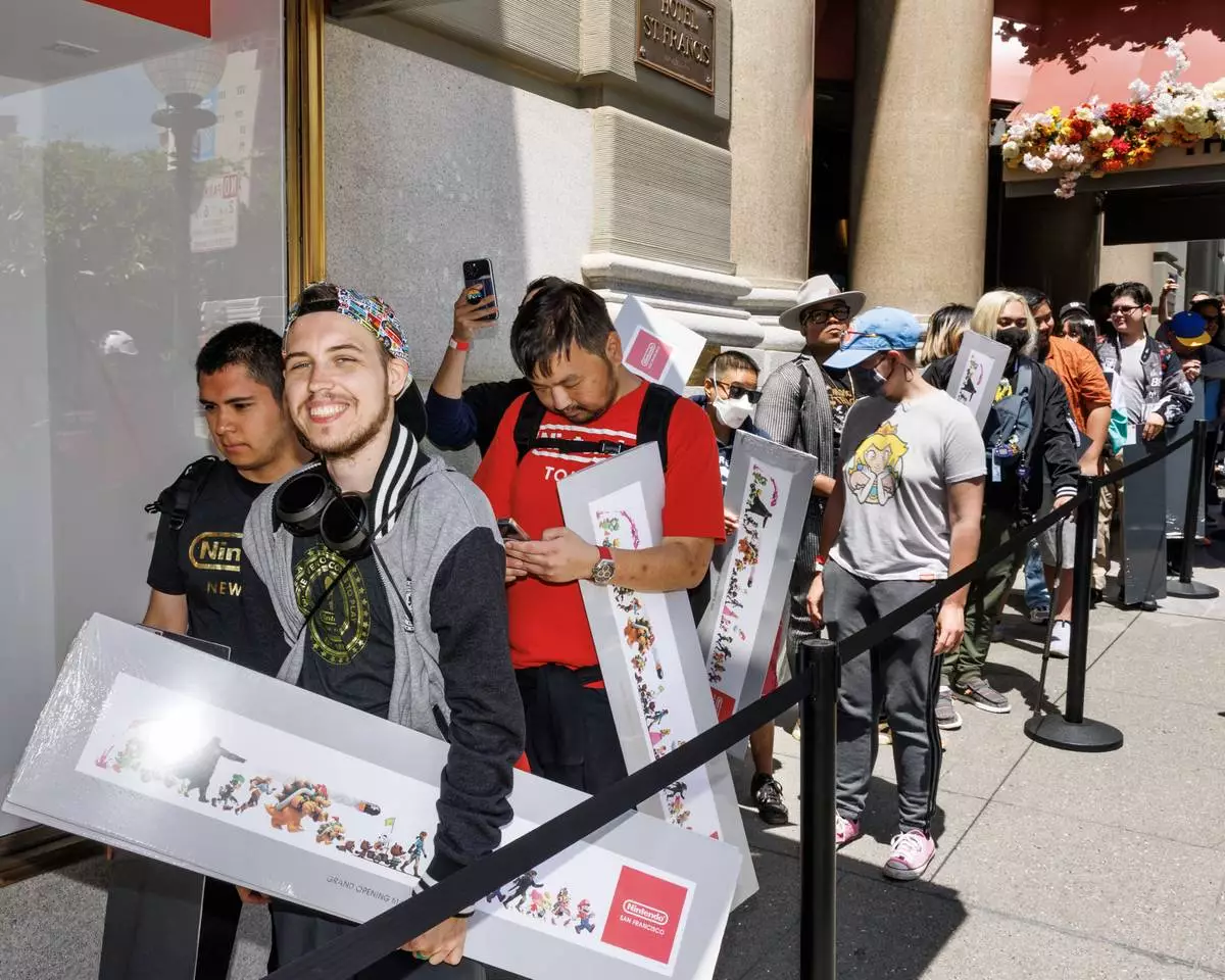 In this photo provided by Nintendo of America, fans waited outside of Nintendo SAN FRANCISCO to celebrate the grand opening in San Francisco’s historic Union Square, where residents and visitors from near and far can experience the world of Nintendo.