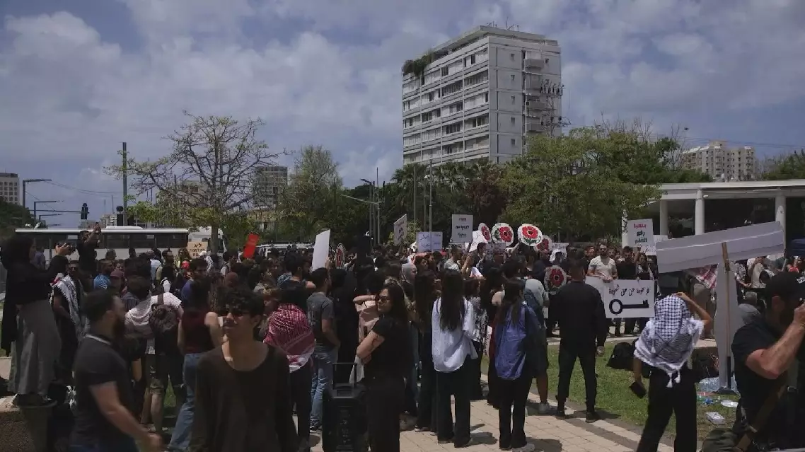 Pro-Palestinian demonstrators gathered in at Tel Aviv University in Israel on Wednesday to mark the 77th anniversary of Nakba, the massive exodus of Palestinians that occurred in 1948 following the establishment of the state of Israel.