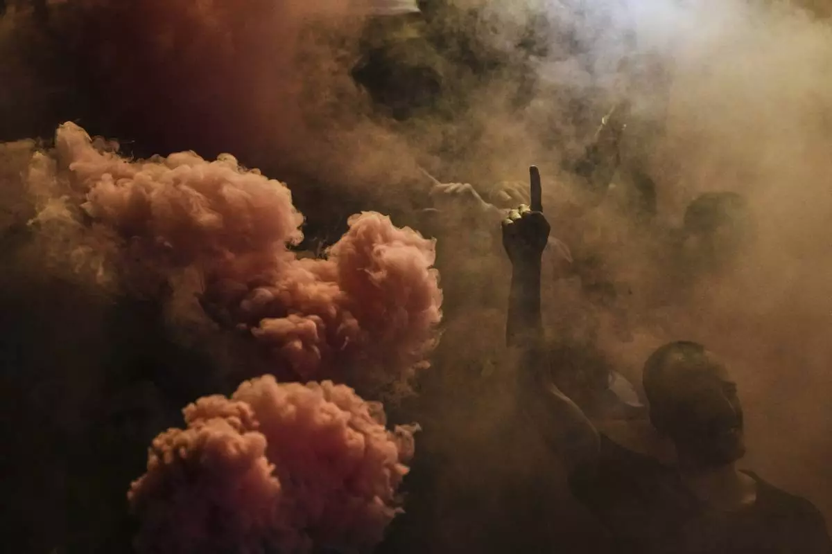 Barcelona fans celebrate in the street after their team won the Spanish La Liga soccer championship in Barcelona, Spain, Thursday, May 15, 2025. (AP Photo/Emilio Morenatti)