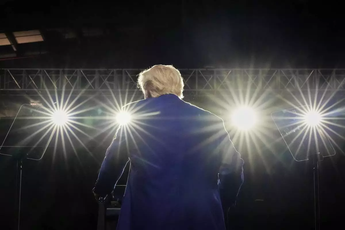 President Donald Trump on stage at the Al Udeid Air Base, Thursday, May 15, 2025, in Doha, Qatar. (AP Photo/Alex Brandon)