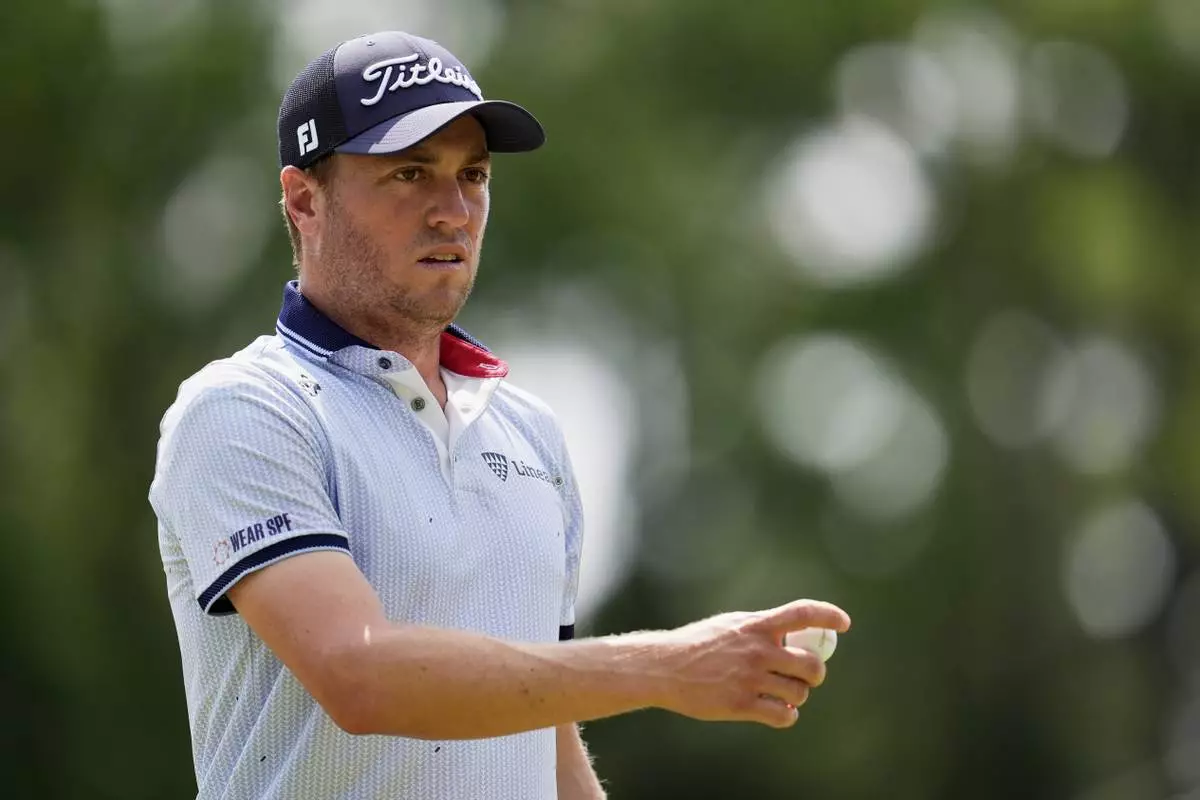 CHARLOTTE, N.C. (AP) — Justin Thomas’ wild opening round at the PGA Championship ended fittingly enough, with his left sock and shoe off as he contemplated how to hit from an utterly ridiculous lie after his ball came to rest on a one-foot patch of tall grass sandwiched between a large rock and a creek next to the 18th green.