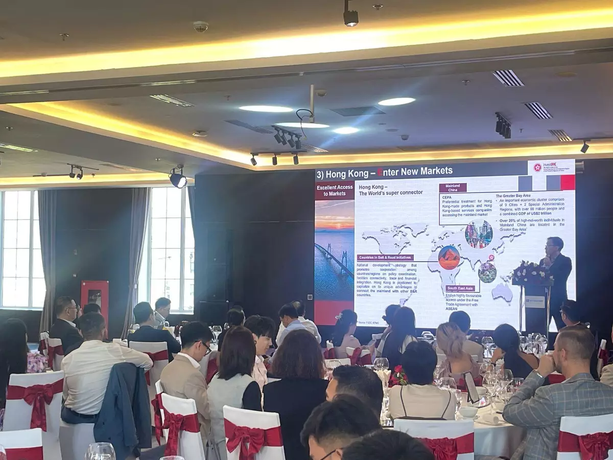 On April 16, the Singapore ETO and Invest Hong Kong cohosted a business seminar and networking event titled "Hong Kong - The Launchpad for Your AI-Driven Success" in Hanoi, the capital of Vietnam. Supported by the Vietnam Software & IT Services Association (VINASA), the event was attended by founders, owners, and senior executives from over 30 companies from sectors including artificial intelligence, cybersecurity, and information and communications technology. Participants were briefed on Hong Kong's market opportunities, AI funding opportunities, tax incentives, and research and development support measures by Mr Fung and the investment promotion team through presentations and a sharing session.