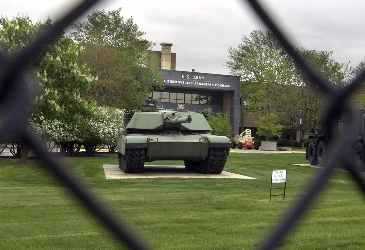 FILE - An M1 Abrams tank is displayed outside the Tank-Army Automotive and Armaments Command (TACOM) in Warren, Mich., Friday, May 13, 2005. (AP Photo/Carlos Osorio, file)