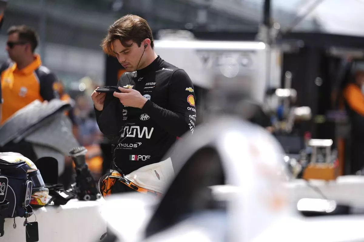 Pato O'Ward, of Mexico, prepares to drive during practice for the Indianapolis 500 auto race at Indianapolis Motor Speedway in Indianapolis, Wednesday, May 14, 2025. (AP Photo/Michael Conroy)