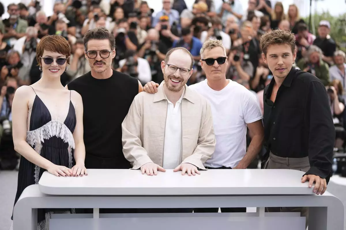 Emma Stone, from left, Austin Butler, director Ari Aster, Joaquin Phoenix and Pedro Pascal pose for photographers upon arrival at the premiere of the film 'Eddington' at the 78th international film festival, Cannes, southern France, Friday, May 16, 2025. (Photo by Scott A Garfitt/Invision/AP)