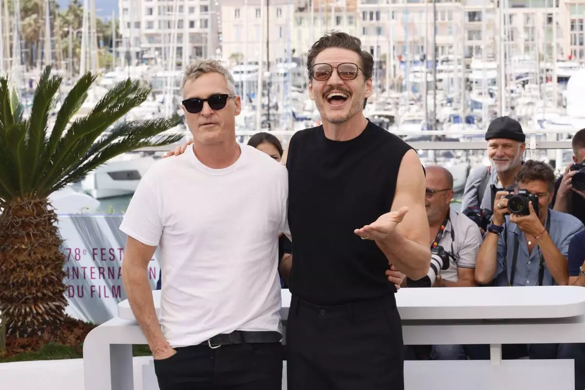 Joaquin Phoenix, left, and Pedro Pascal pose for photographers upon arrival at the premiere of the film 'Eddington' at the 78th international film festival, Cannes, southern France, Friday, May 16, 2025. (Photo by Scott A Garfitt/Invision/AP)