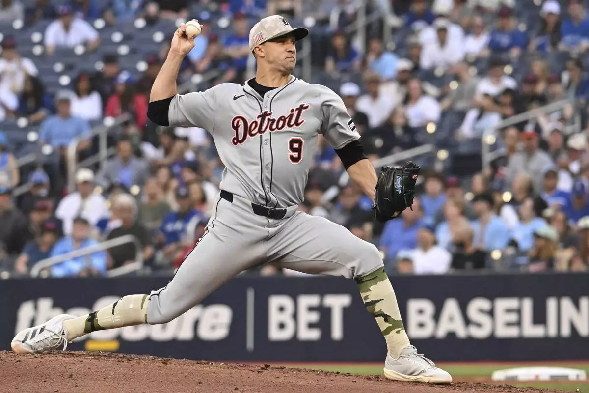 Detroit Tigers starting pitcher Jack Flaherty throws to a Toronto Blue Jays batter in first-inning baseball game action in Toronto, Friday, May 16, 2025. (/Jon Blacker/The Canadian Press via AP)