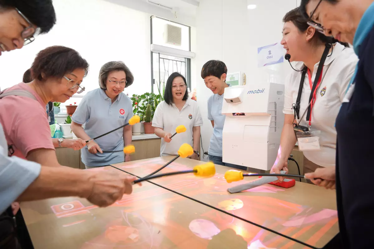 Apart from answering their questions on the use of smartphones, the civil service volunteers also let the elderly experience the benefits of digital technology through various games, including doing physical exercises by making use of an AI application developed by the centre for people with knee problems in the community, which allows users to adjust the exercise intensity and movement according to their own physical conditions. In addition, the elderly also participated in games for sensory integration training and cognitive training to help enhance their responsive abilities.
