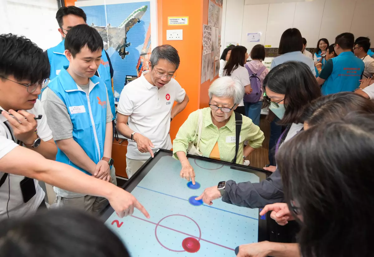 The Civil Service Bureau (CSB) Volunteer Team and the Digital Policy Office Volunteer Team today (May 17) visited an elderly activity centre in To Kwa Wan, and assisted the elderly to learn how to use smartphones and mobile applications. They also had fun from gerontechnology through interactive activities and integration of technology into daily lives.