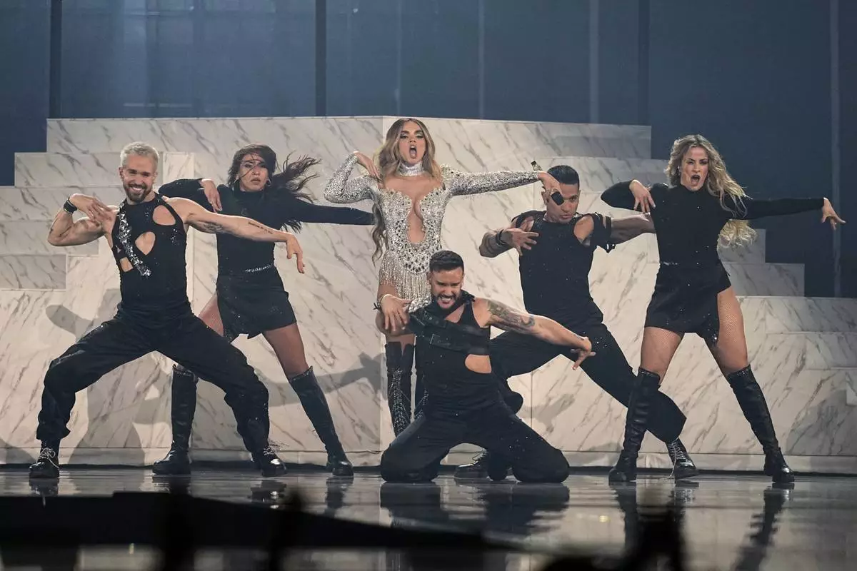 There were divas aplenty, including Spain’s Melody, Poland‘s Justyna Steczkowska, participating in Eurovision for a second time after a 30-year gap,, and Malta’s outrageous Miriana Conte, who performed the saucy “Serving” on a set including a glitter ball and giant lips.